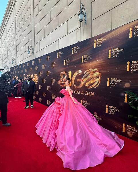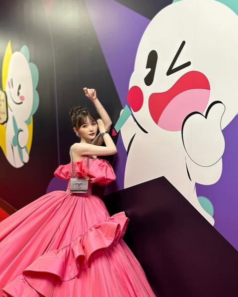 美品!ハイセンス 鮮やかなピンク カラードレス 扇形に広がる大ぶりのフリルモチーフ プリンセスライン ボリューミー パーティードレス