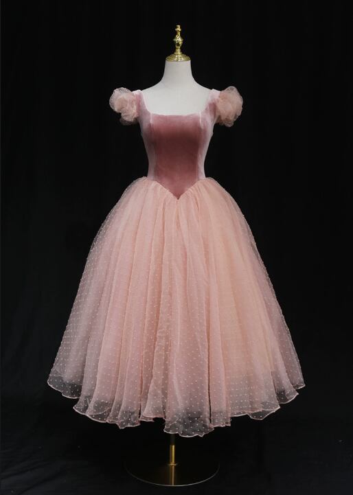 美品!ピンクカラードレス ミニドレス ドット柄チュールドレス パーティードレス スクエアネック ダンスドレス 演奏会/イベント