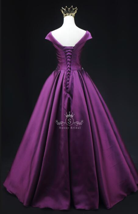 美品!パープルカラードレス ビジュー Aラインドレス イブニングドレス クラシカル Vカット コンサート/演奏会 パーティードレス