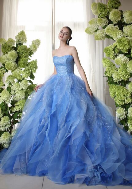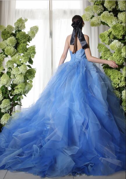 美品!3色ブルーカラードレス 付け袖 ラッフルフリル グラデーション キラキララメチュール ボリュームドレス プリンセスライン【オーダーメイド】