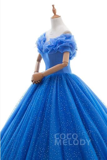 美品!ロイヤルブルー カラードレス キラキララメチュール フリルオフショルダー アームカバー ボリュームドレス パーティードレス【色変更可能】