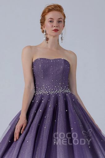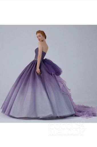美品!キラキラ星空ドレス 濃いパープルカラードレス ビーズ/ビジュー/パール 紫グラデーション リルリボントレーン 美しいバックスタイル シャーリング編み上げ パーティードレス | David1021k Dress(ダヴィドレス)