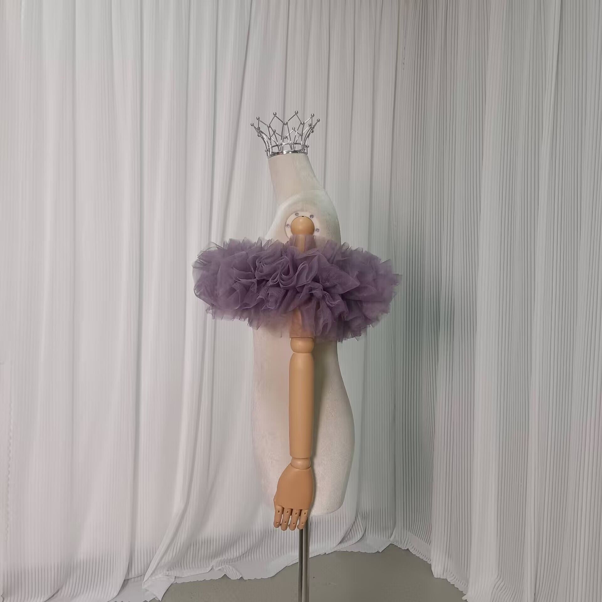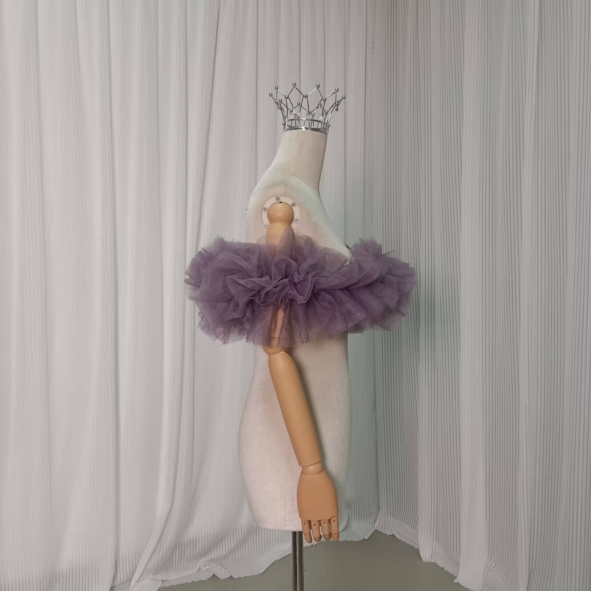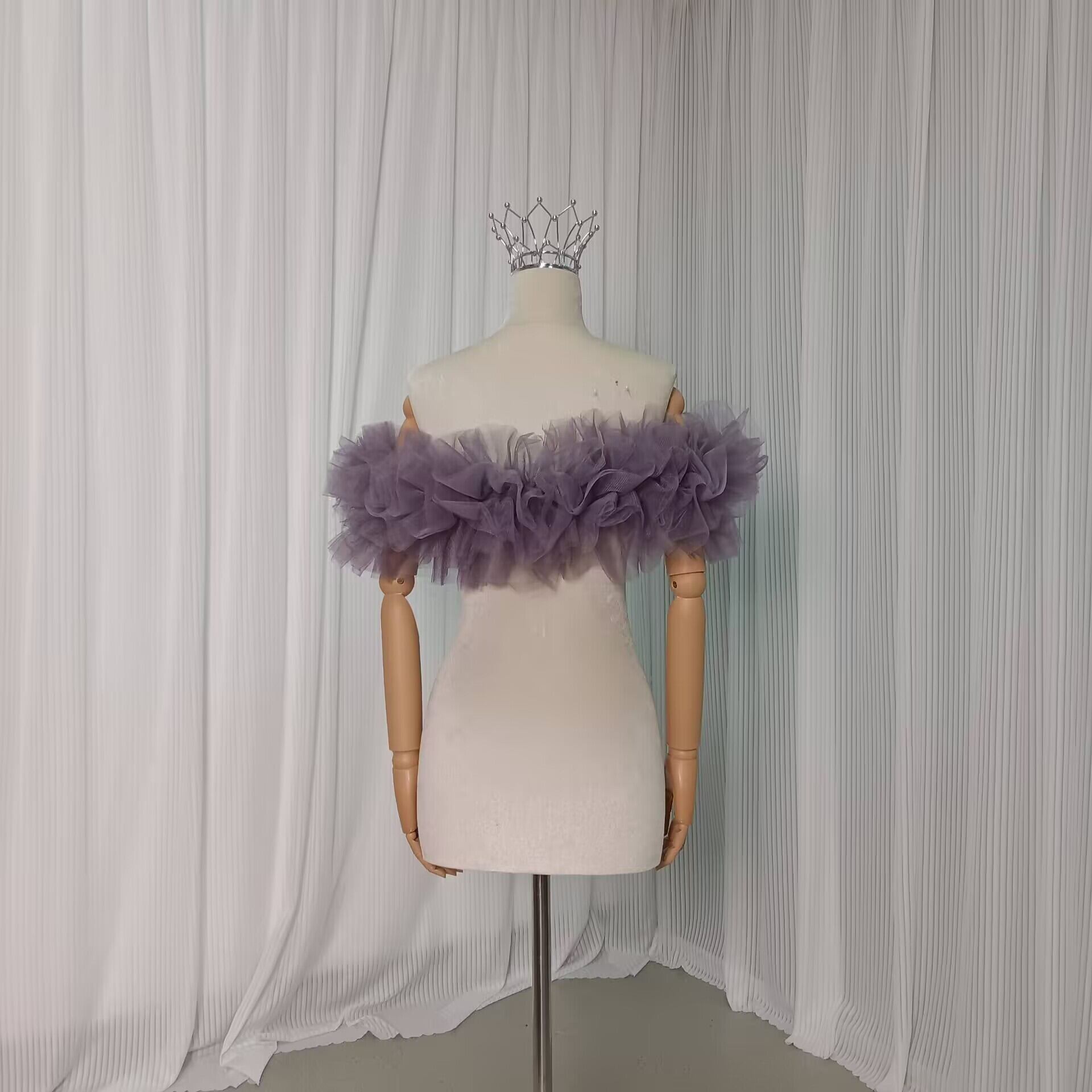 人気上昇!紫 取り外しオフショルダー もこもこチュールドレス ボリューム パフスリーブ 色オーダー可能