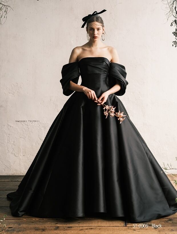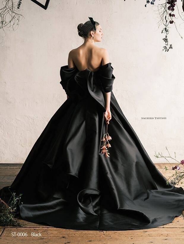 美品!ブラックカラードレス 黒 取り外し袖 フリルバックスタイル 光沢サテン パーティードレス イブニングドレス【色変更可能】