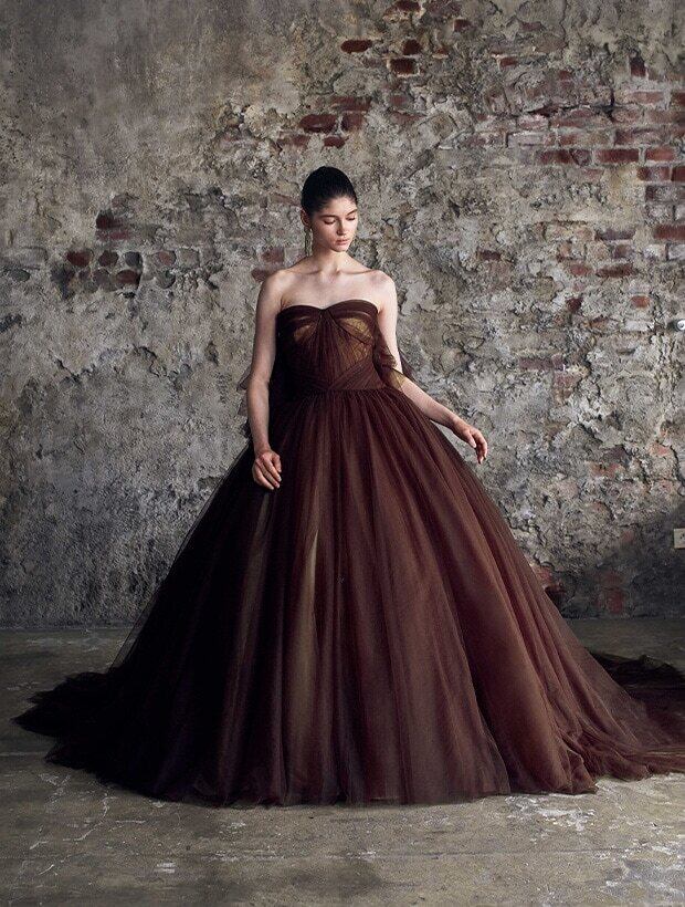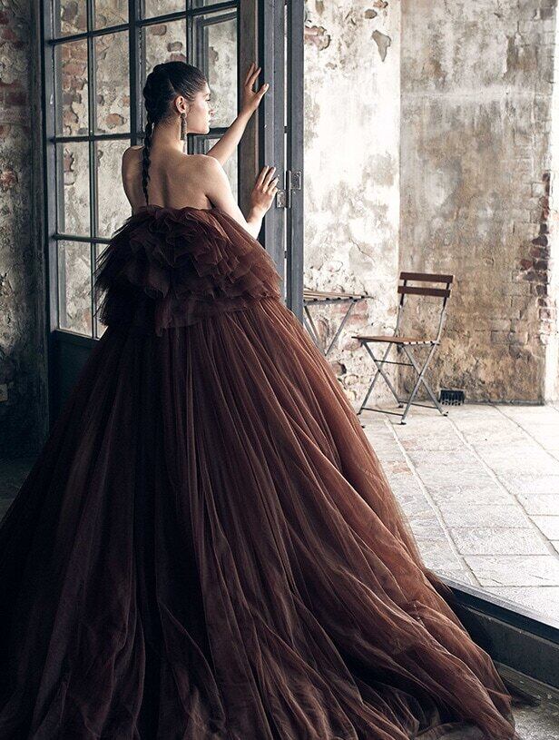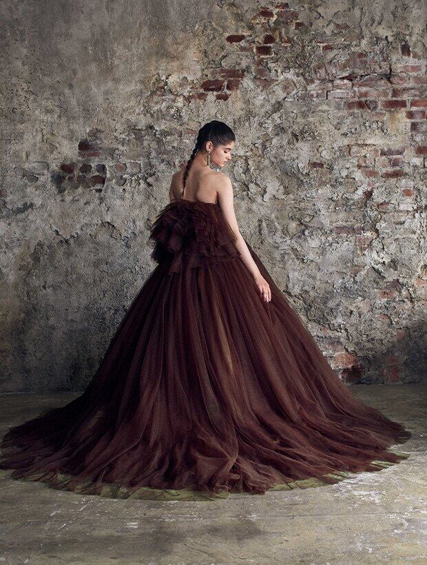 美品!チョコレートブラウン カラードレス ふわふわバックリボン ふんわりチュールドレス パーティードレス プリンセスライン【色変更可能】