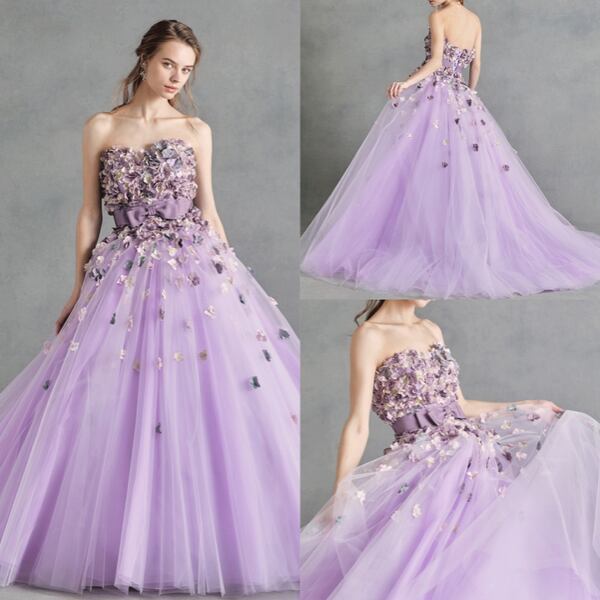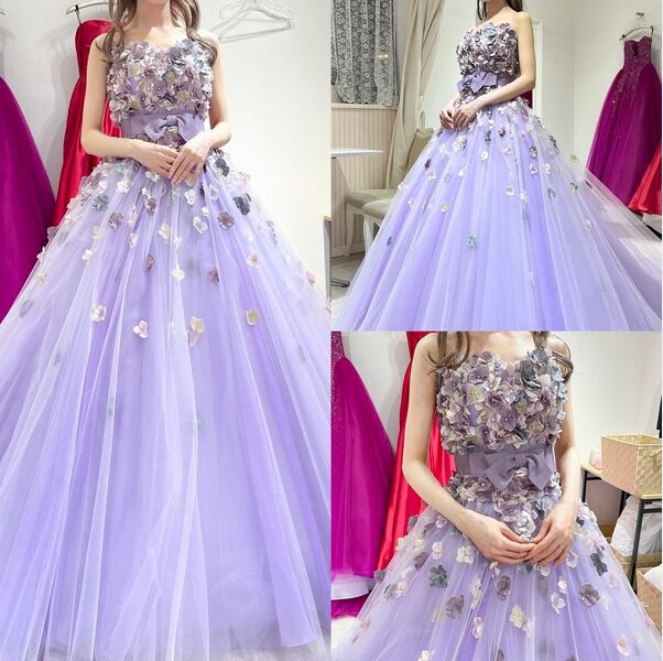 美品!造花ドレス フラワードレス パープルカラードレス 3Dアップリケ ビスチェドレス ダンスドレス パーティードレス ピアノ演奏ドレス
