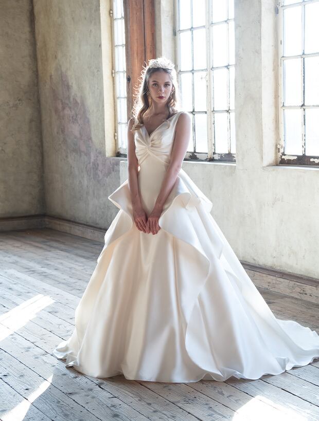 美品!ノースリーブ フリルスカート ウエディングドレス サテンドレス パーティードレス プリンセスライン 花嫁/前撮り【色変更可能】