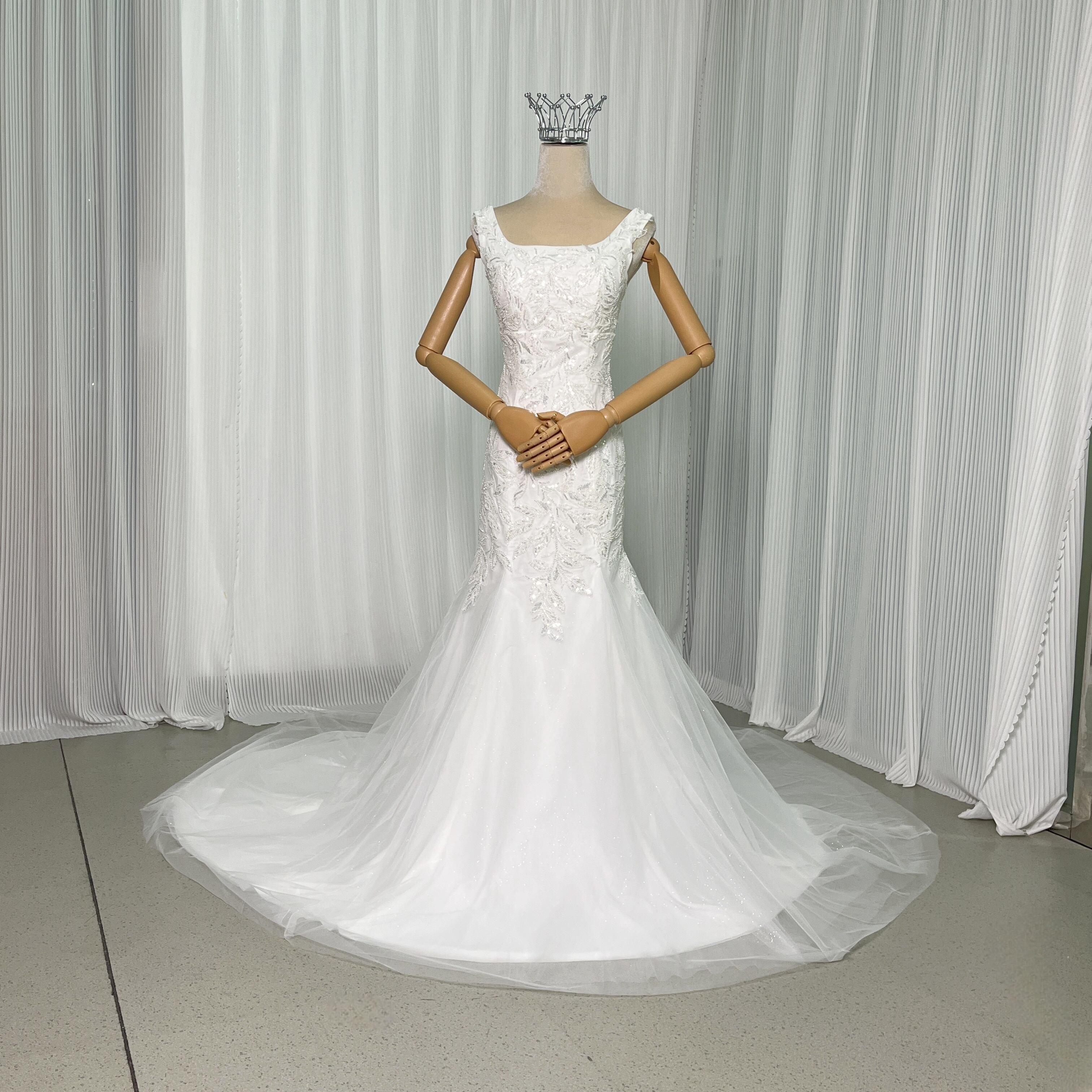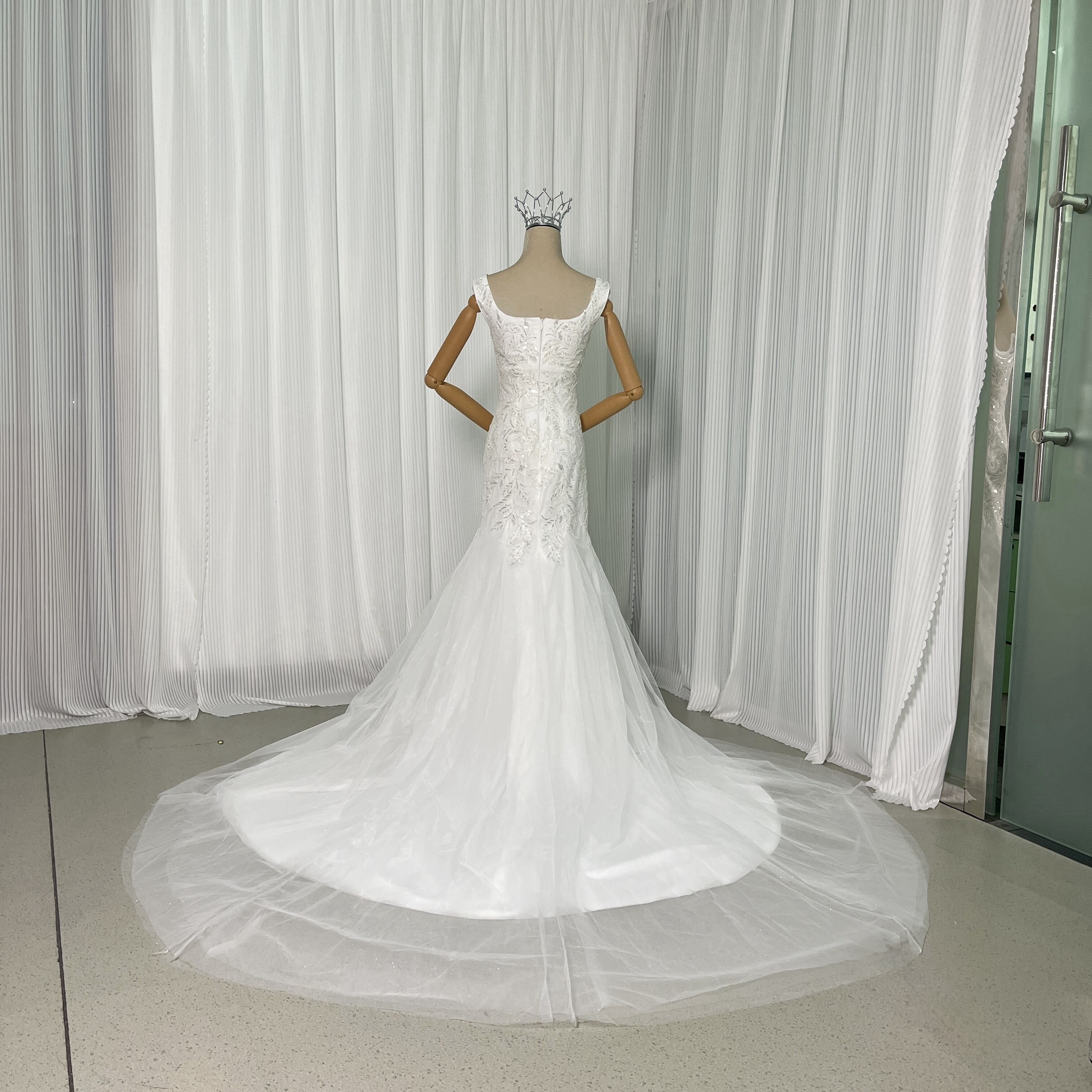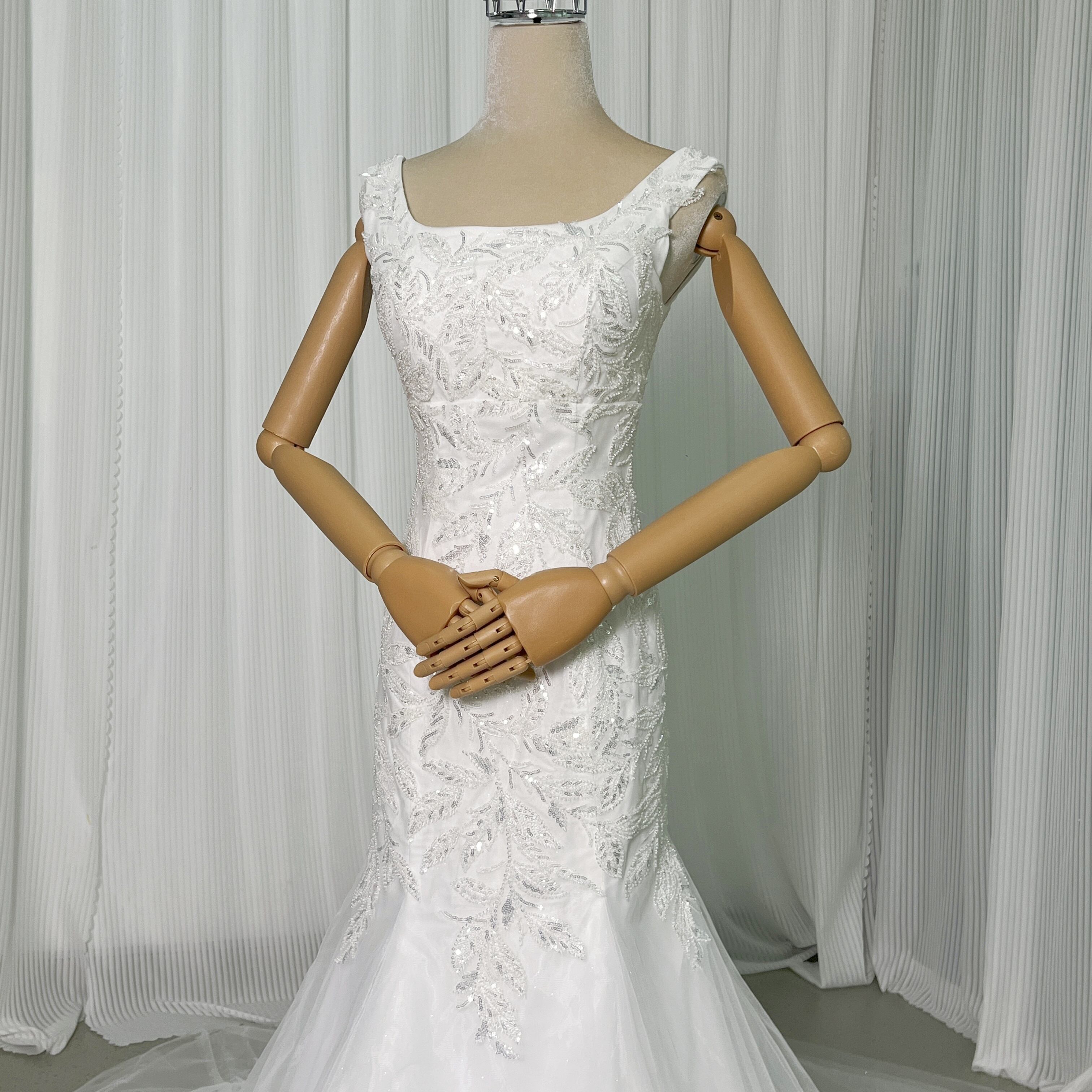 抜群のおしゃれ見え ホワイト ウエディングドレス 3D立体レース刺繍 マーメイドライン華やかなトレーン パーティードレス 演奏会