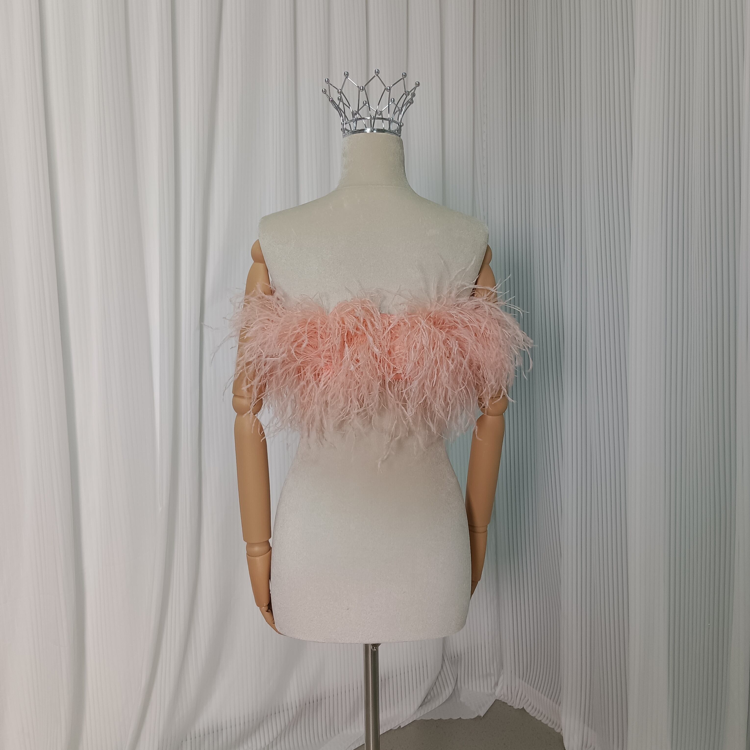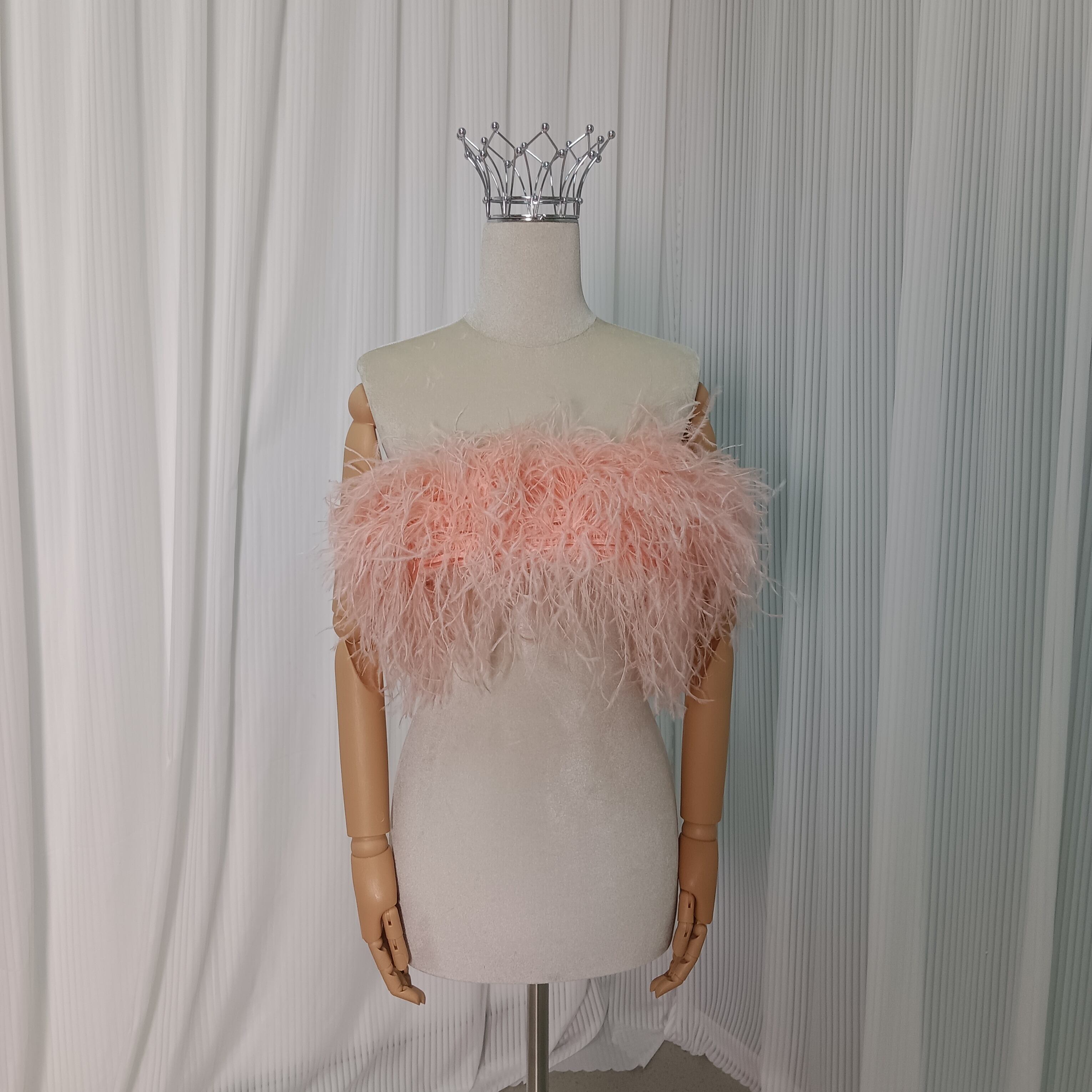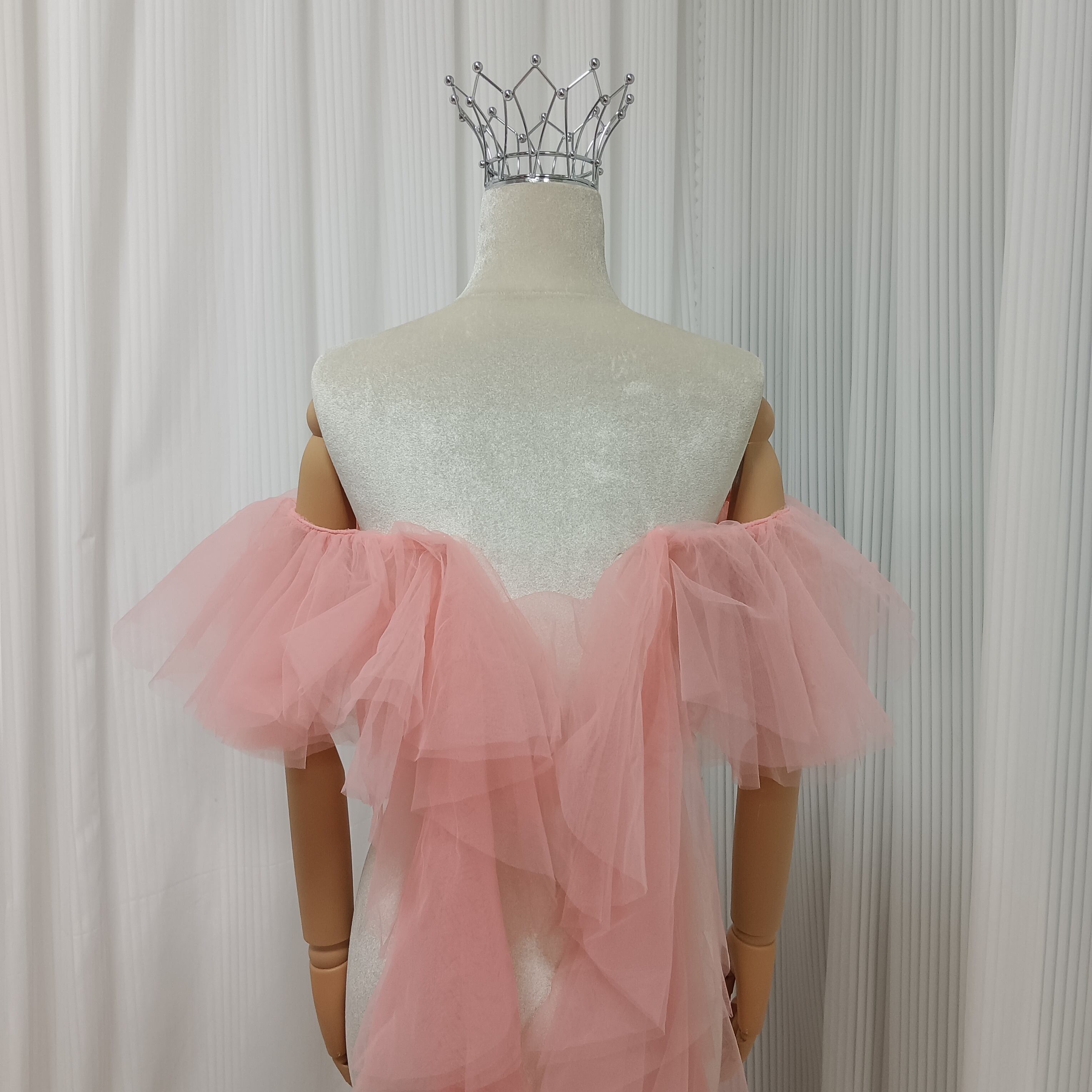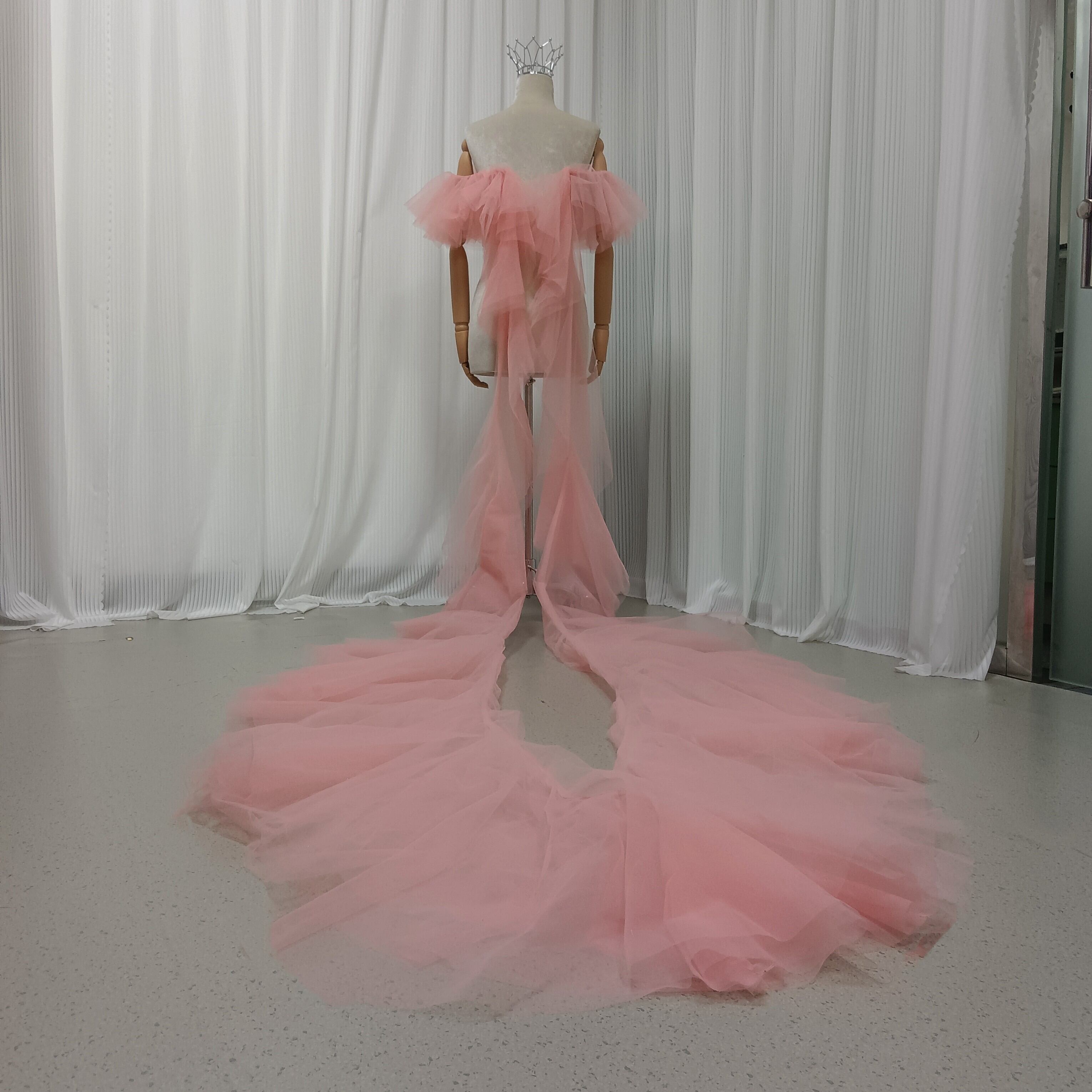 送料無料!ピンクカラードレス ファーフェザー オフショルダー ロングトレーン マーメイドパーティードレス 前撮り/花嫁