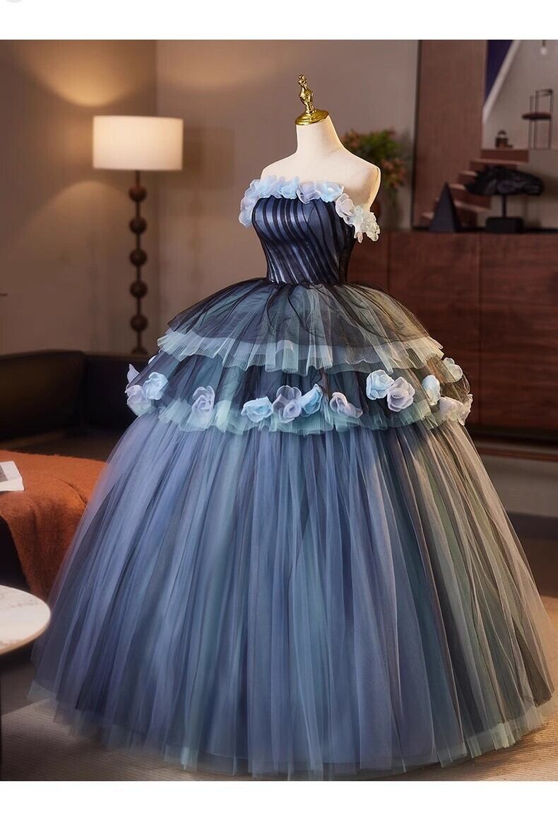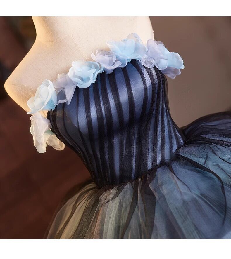 送料無料! ブルーグレー カラードレス ソフトチュール フレアスカート 前撮り/花嫁