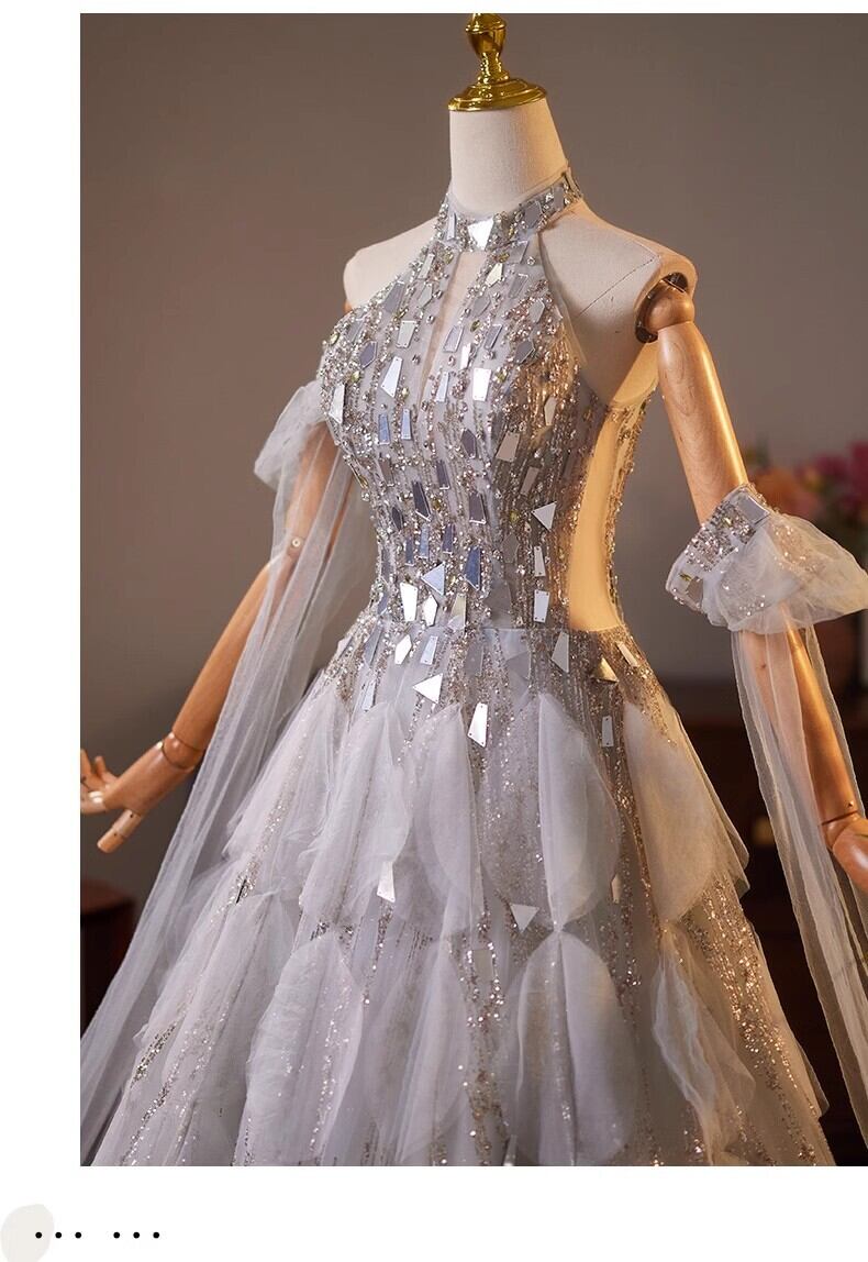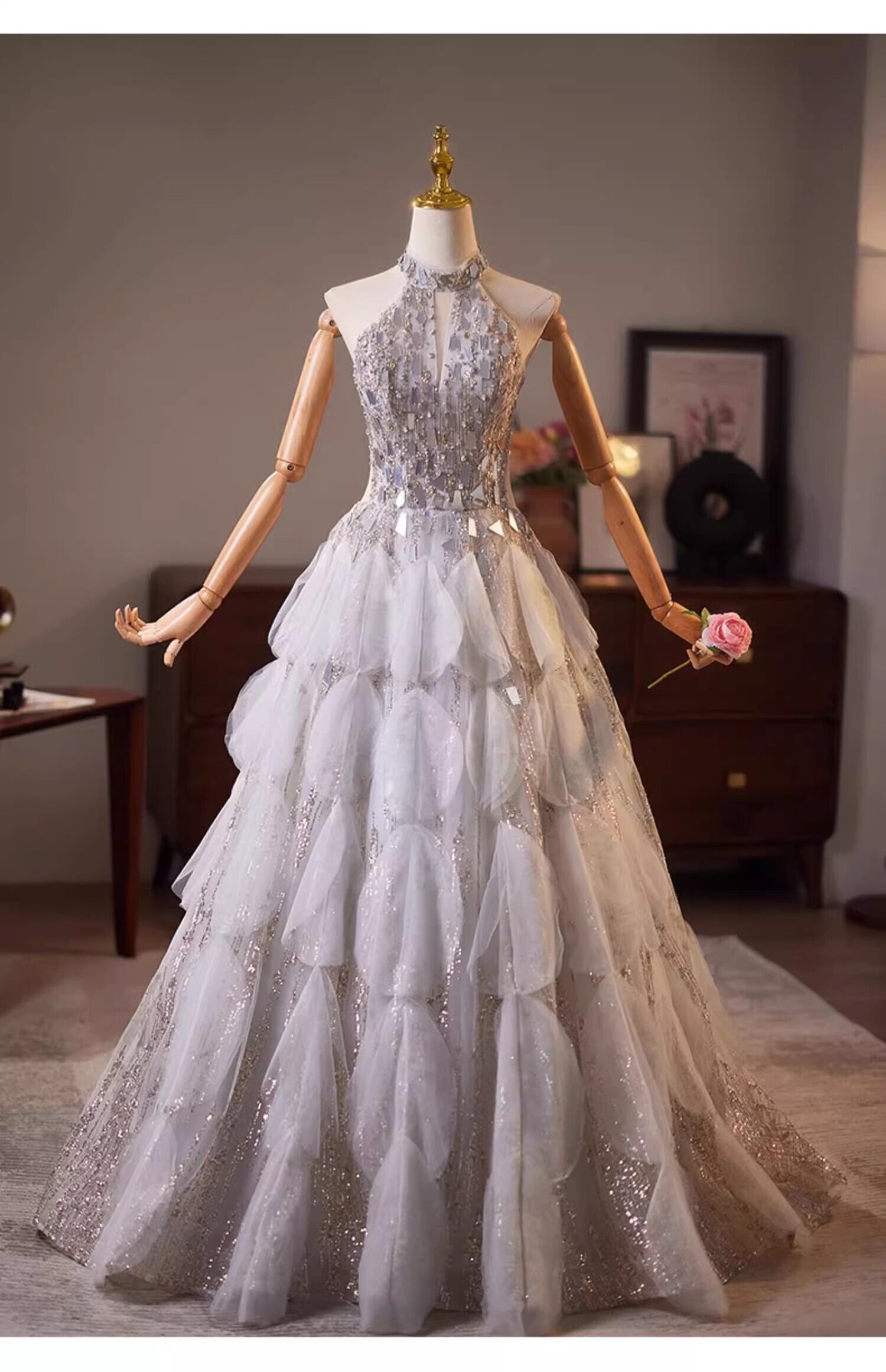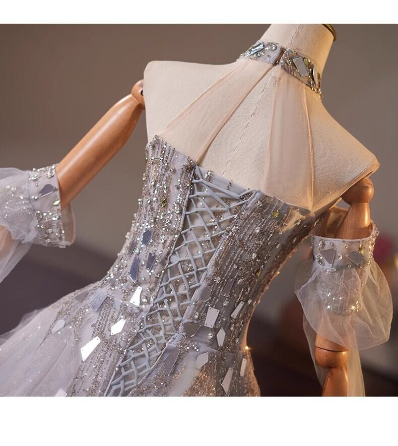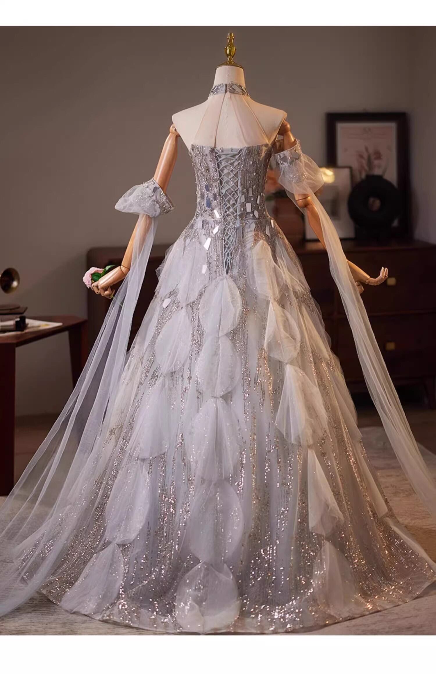 送料無料 グレー カラードレス キラキラスパンコール ソフトチュール 柔らかく重ねたチュールスカート フレアスカート 前撮り/花嫁