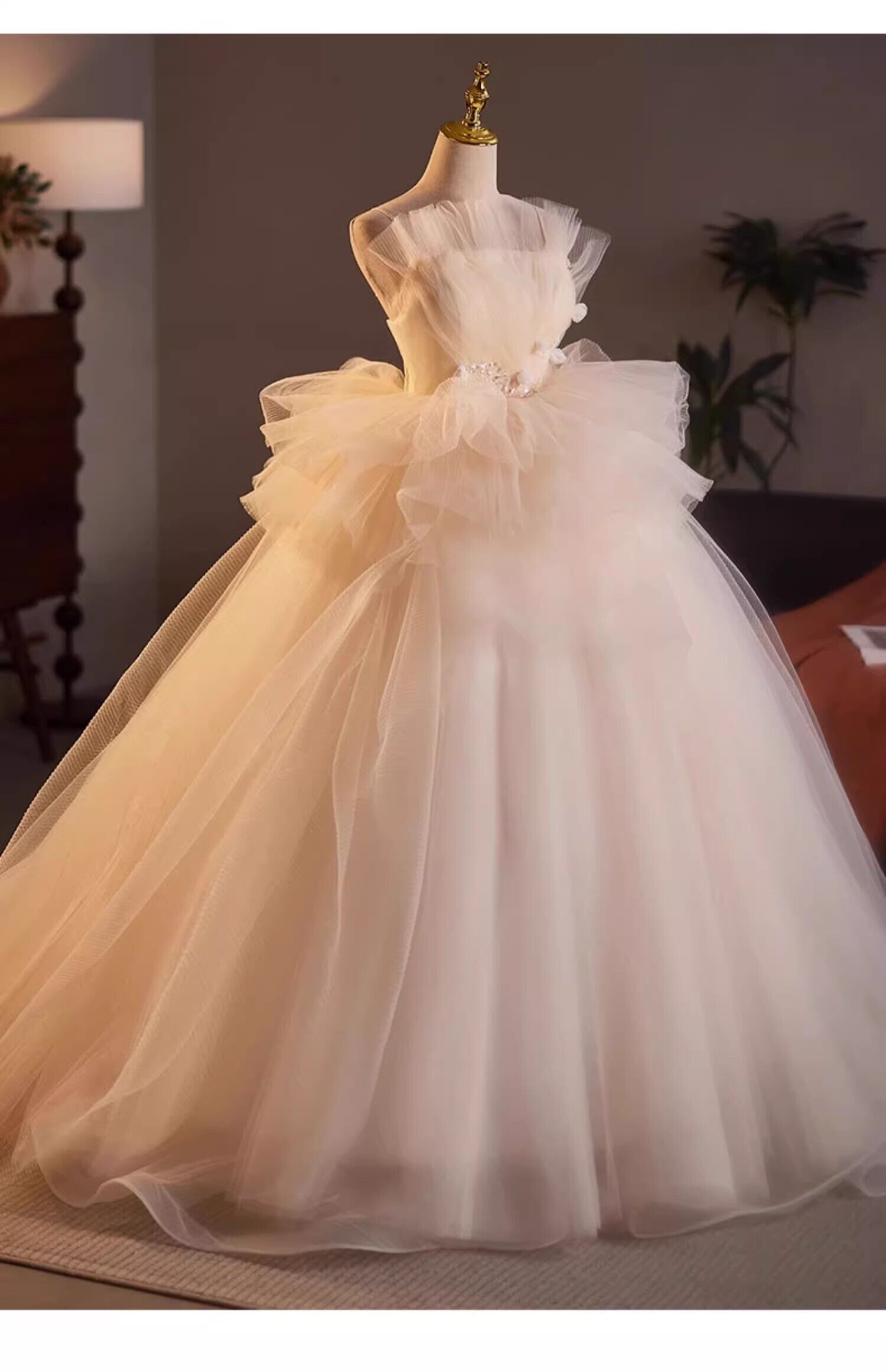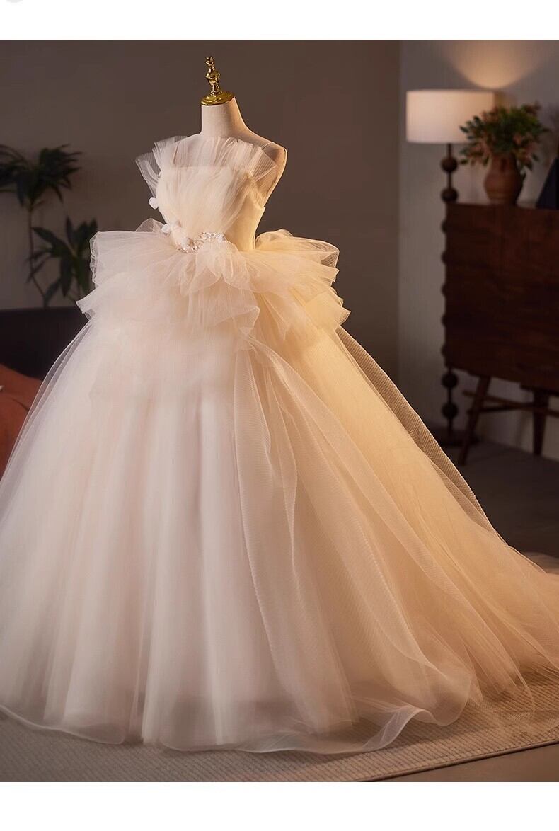 送料無料!シャンパンの色 カラードレス ソフトチュール  フレアスカート 前撮り/花嫁