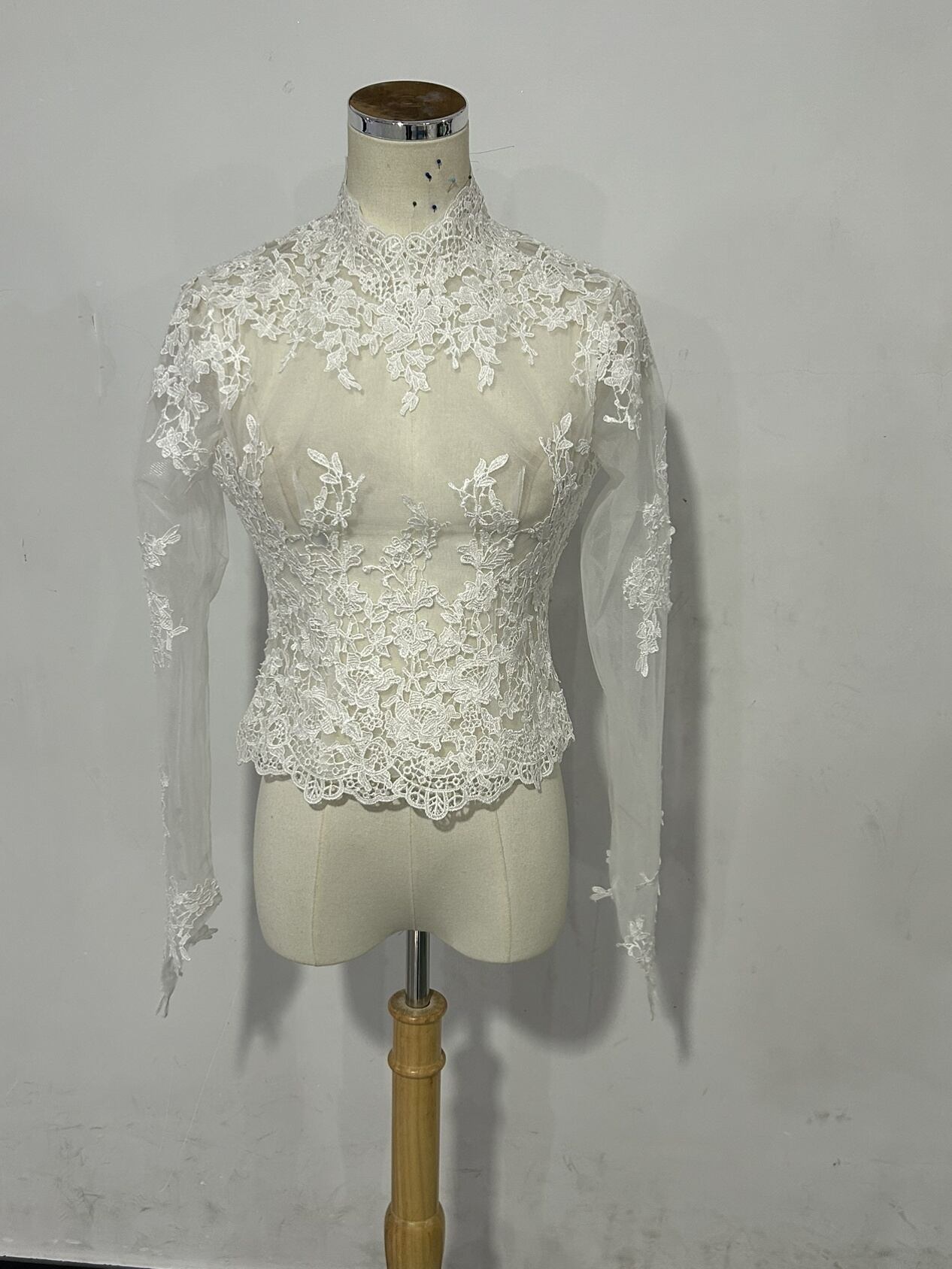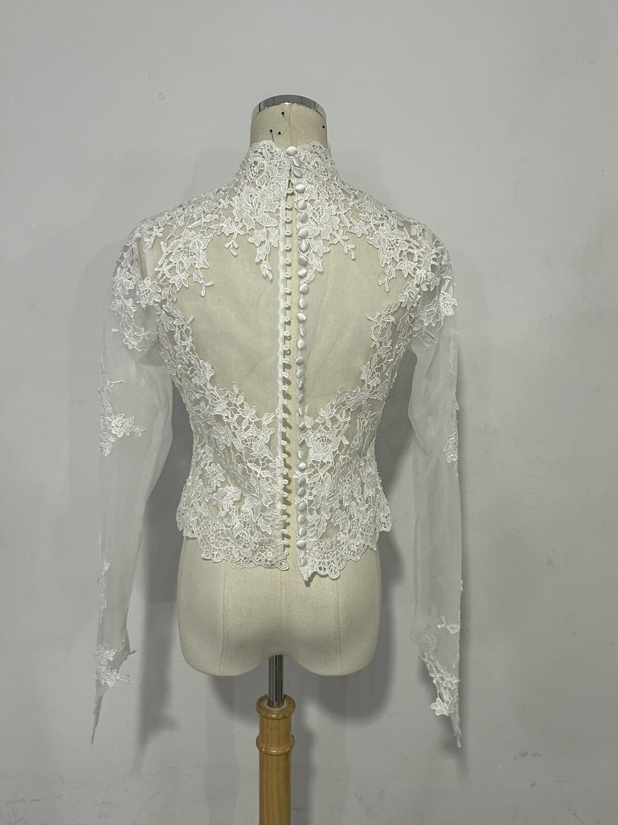 手の甲までカバーするトップス ブラウス 抑えめのハイネック くるみボタン ウエディングドレスアレンジ用ボレロ