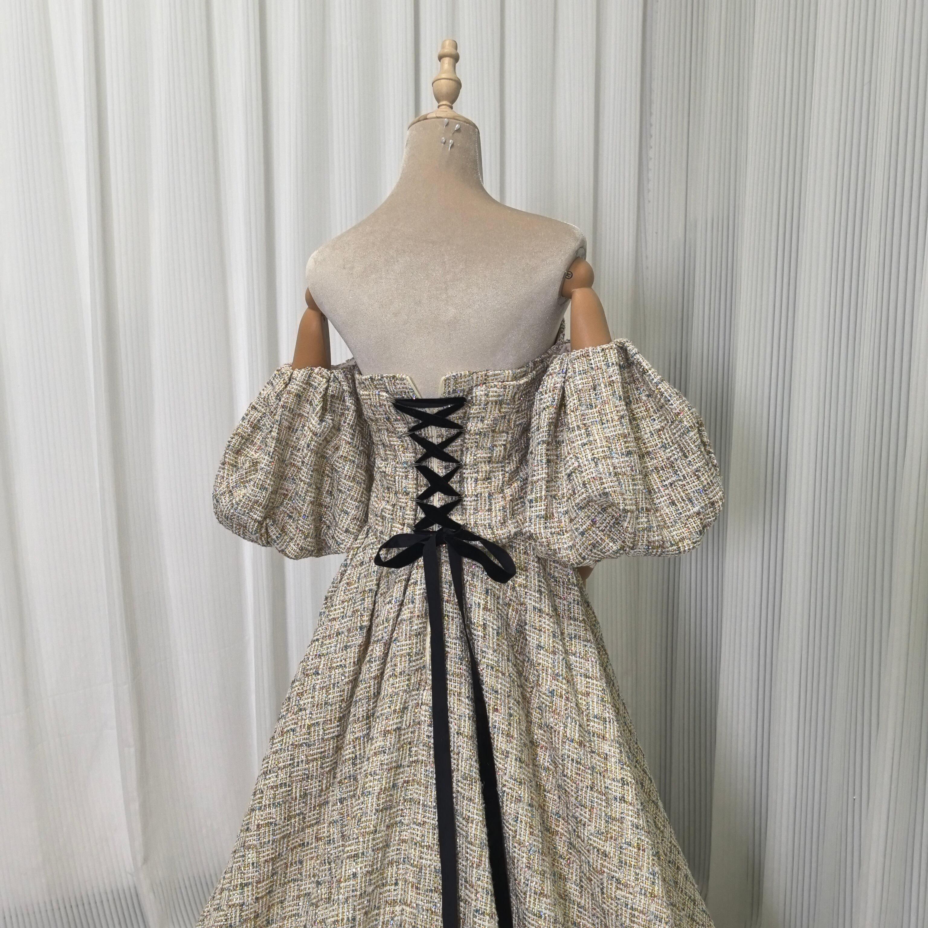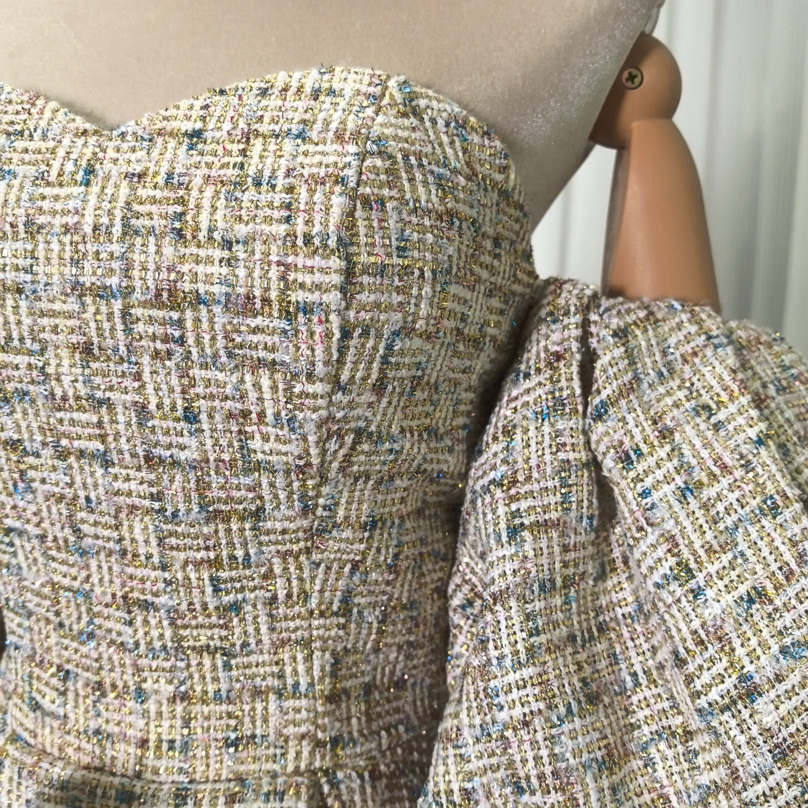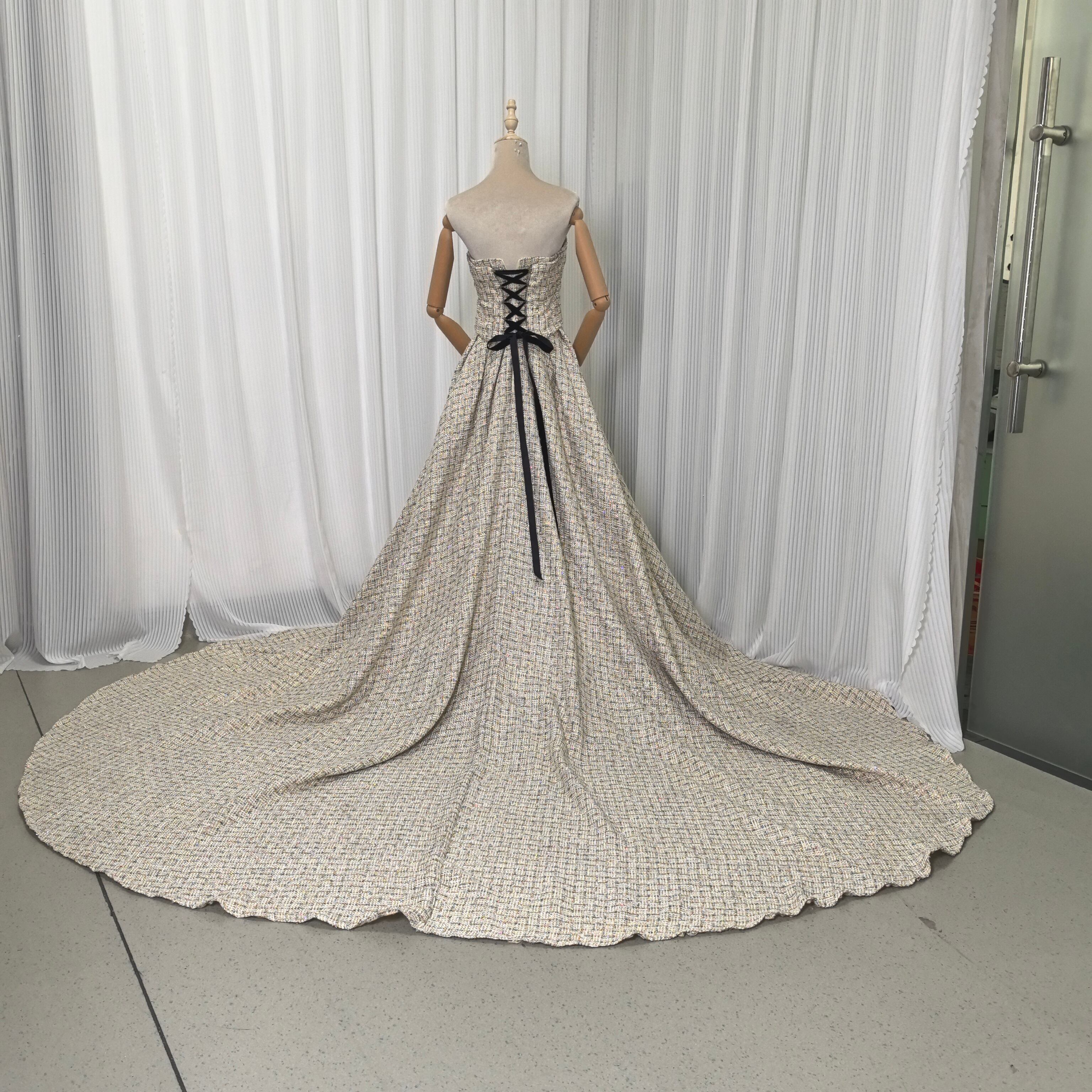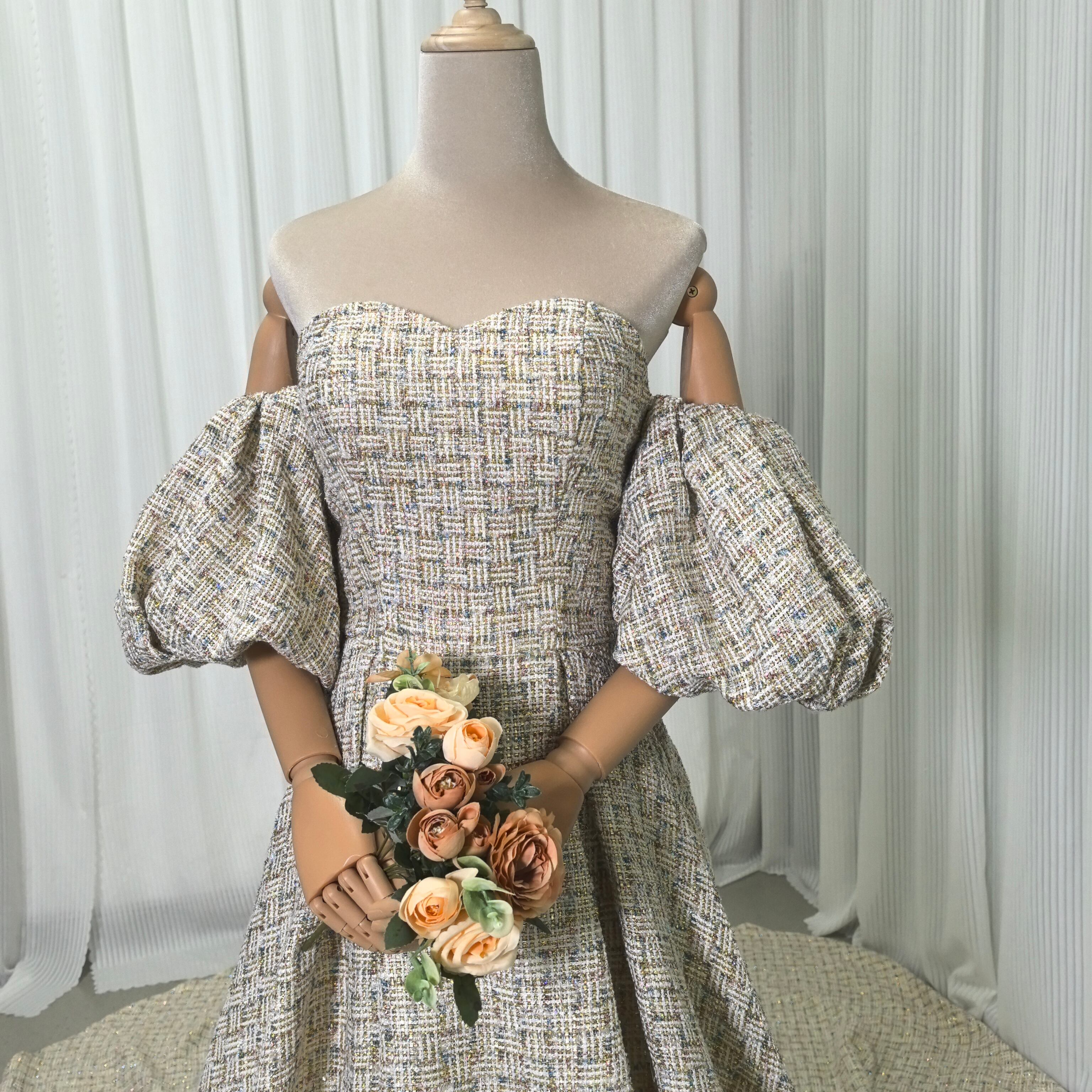 ツイードドレス キラキラチュール ベアトップ カラードレス 取り外し袖 キュロットスカート 前撮り/花嫁