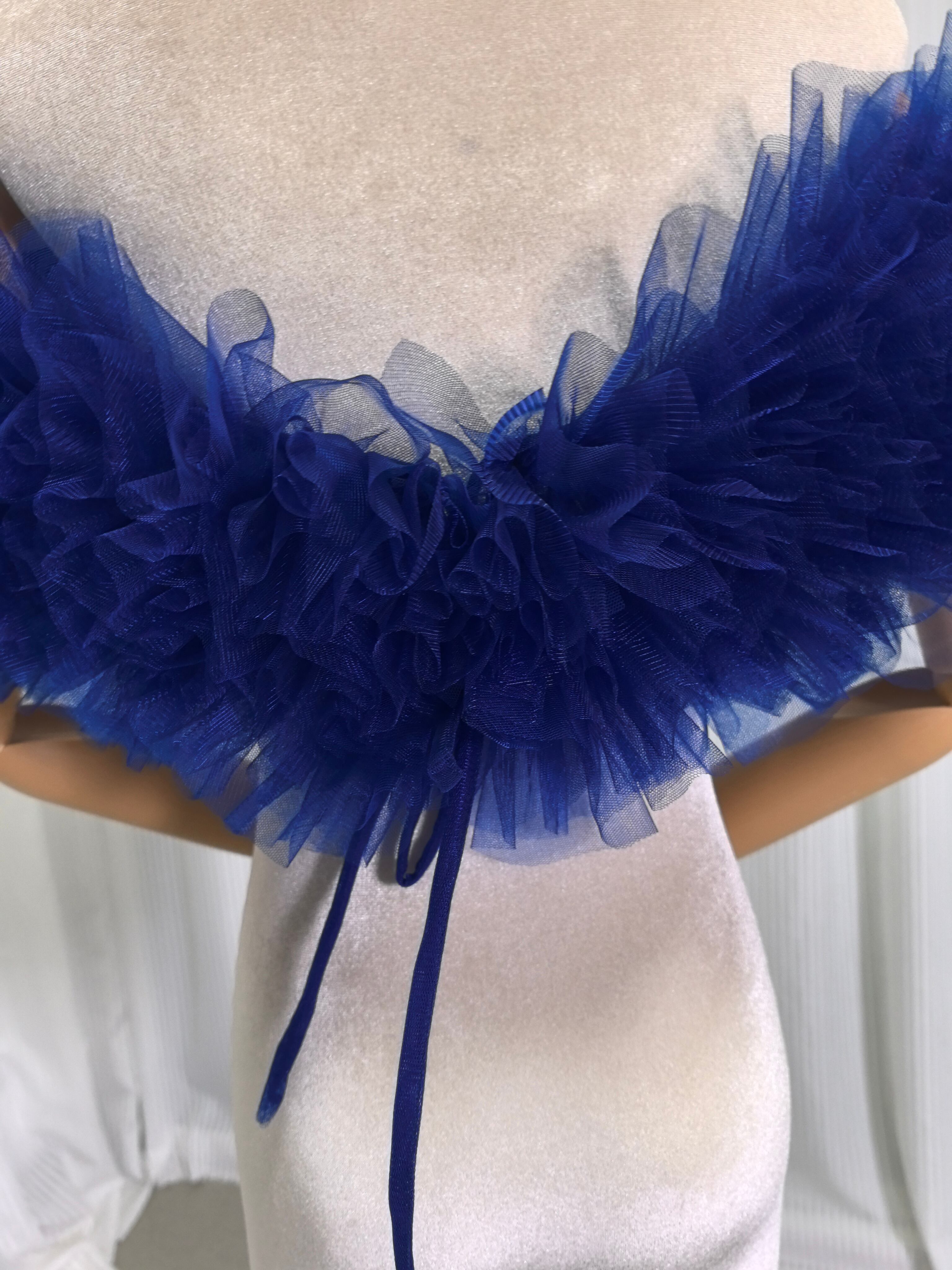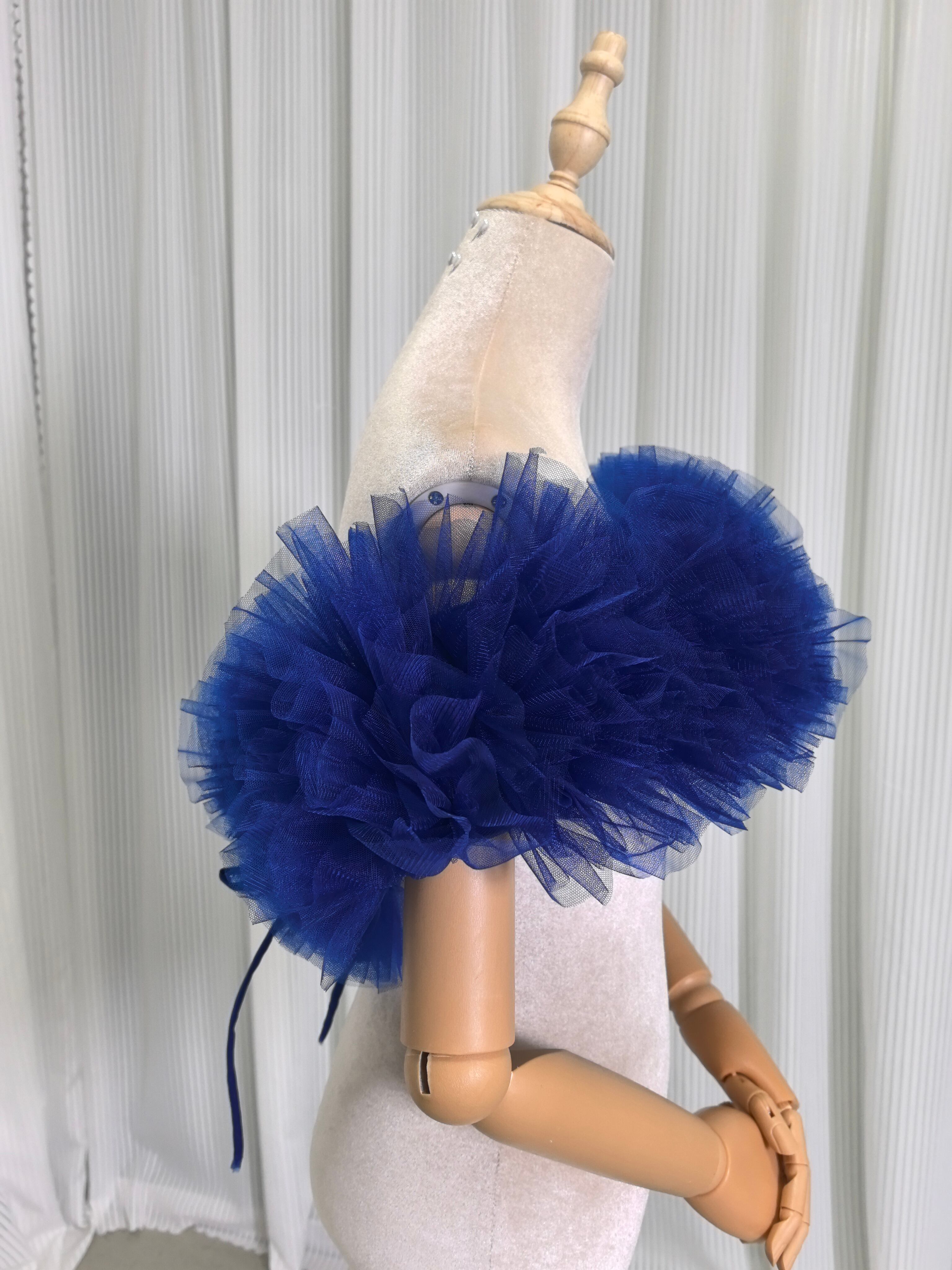 高品質!紺 ポンチョ ソフトチュール ラッフルフリル  取り外しオフショルダー Size:なし