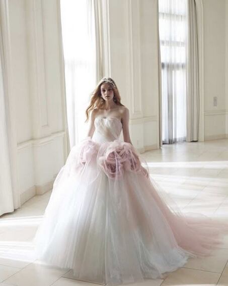 美品!3Dフラワードレス 桜色 薄ピンクカラードレス ウエディングドレス ボリューミーのチュールドレス パーティードレス ミディアムドレス【色変更可能】