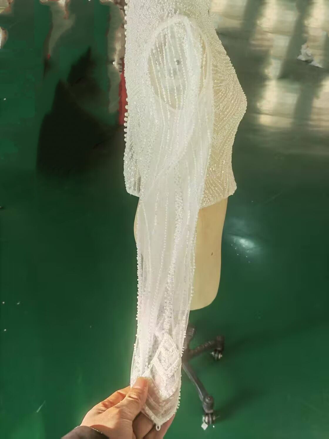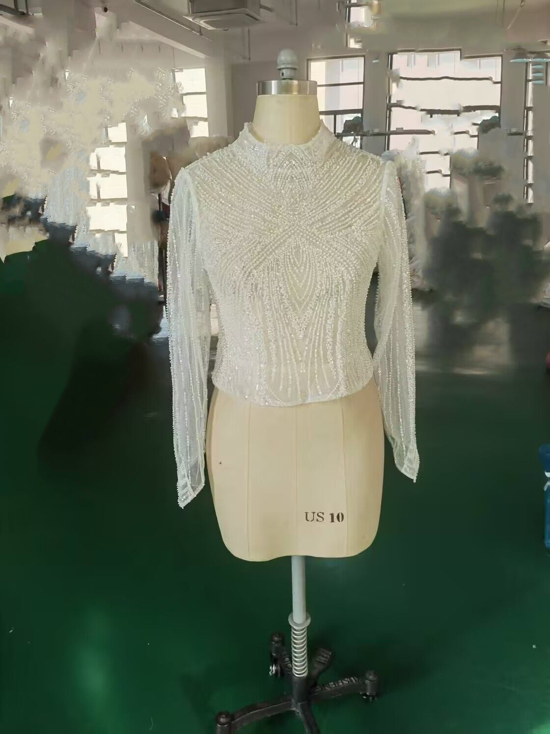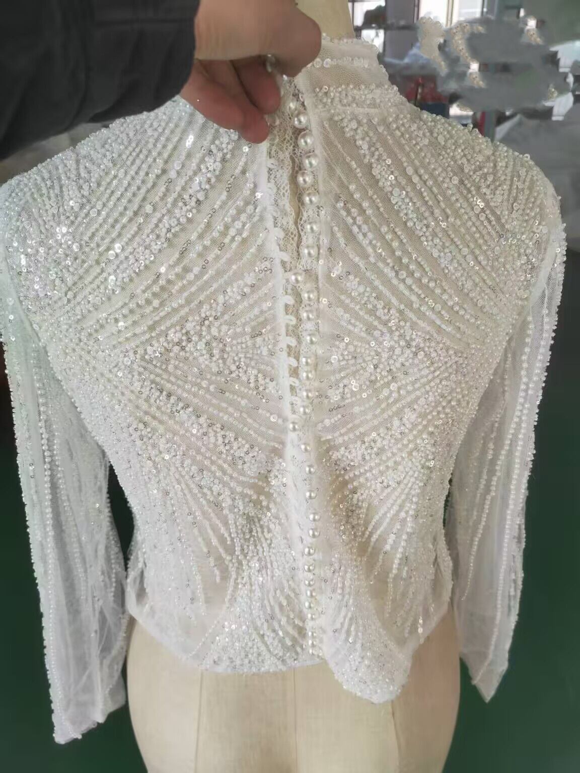 上品なくるみボタン ハイネック レースボレロ ビジュートップス キラキラのハンドビーディング ウエディングドレス