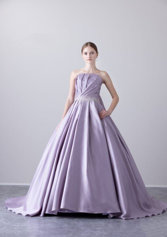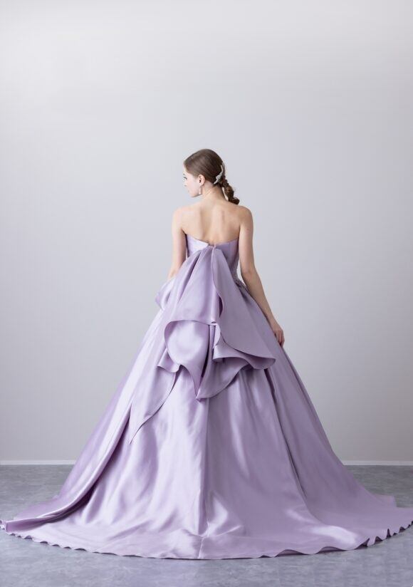 美品!ライトパープルカラードレス ラッフルフリル バックスタイル パーティードレス ビスチェスタイル【色変更可能】