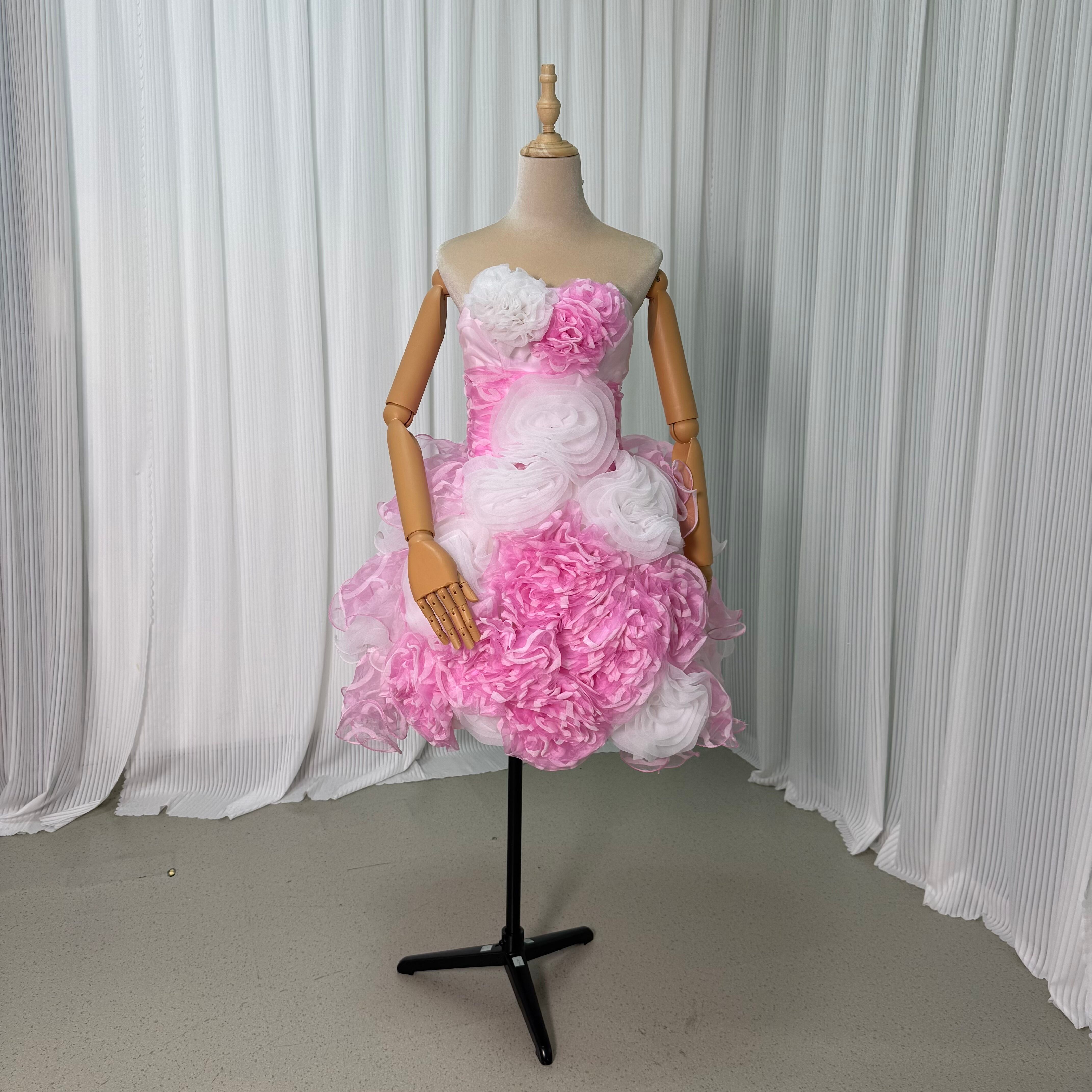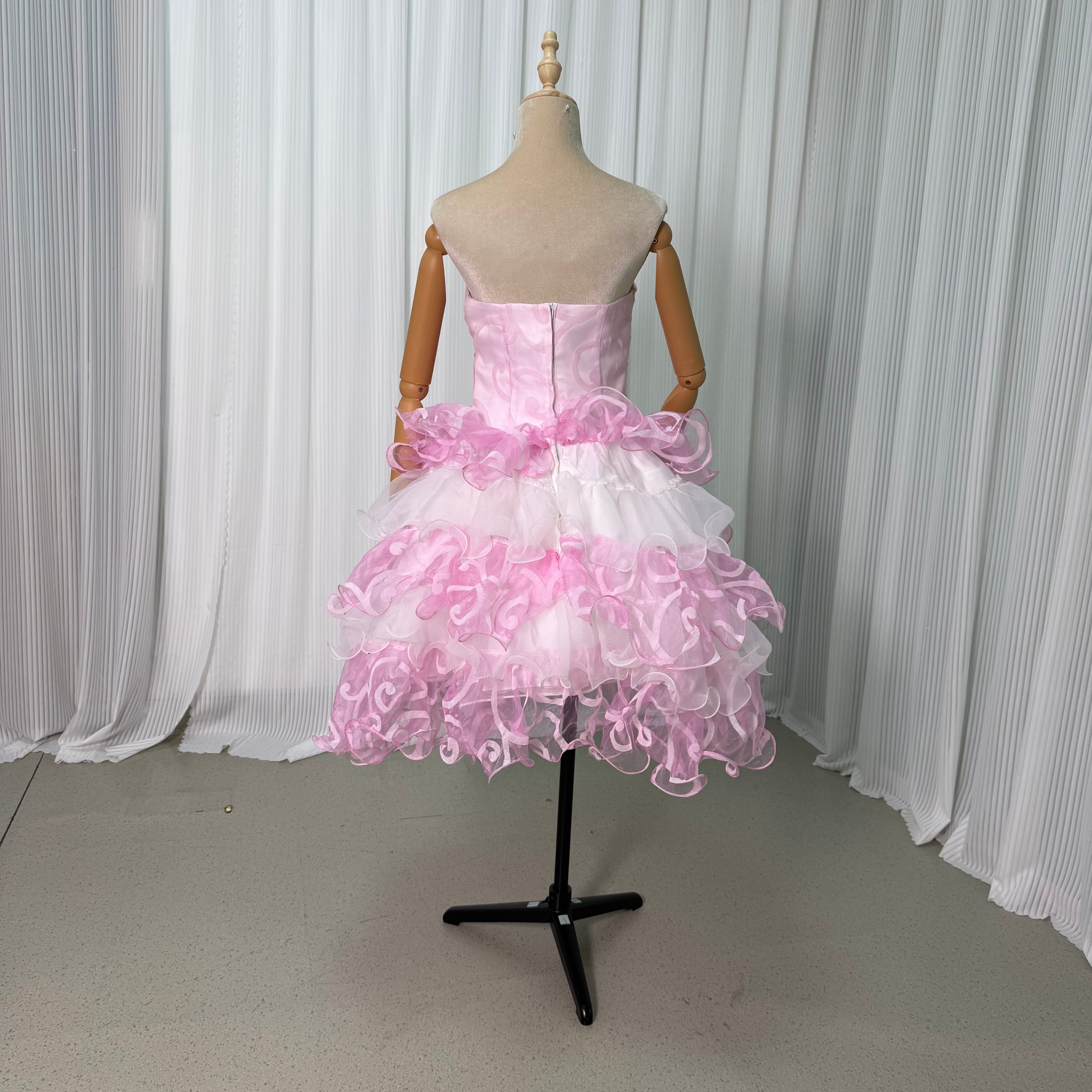 ベアトップ もこもこ ピンクカラードレス チュールドレス ミニドレス 結婚式/披露宴/