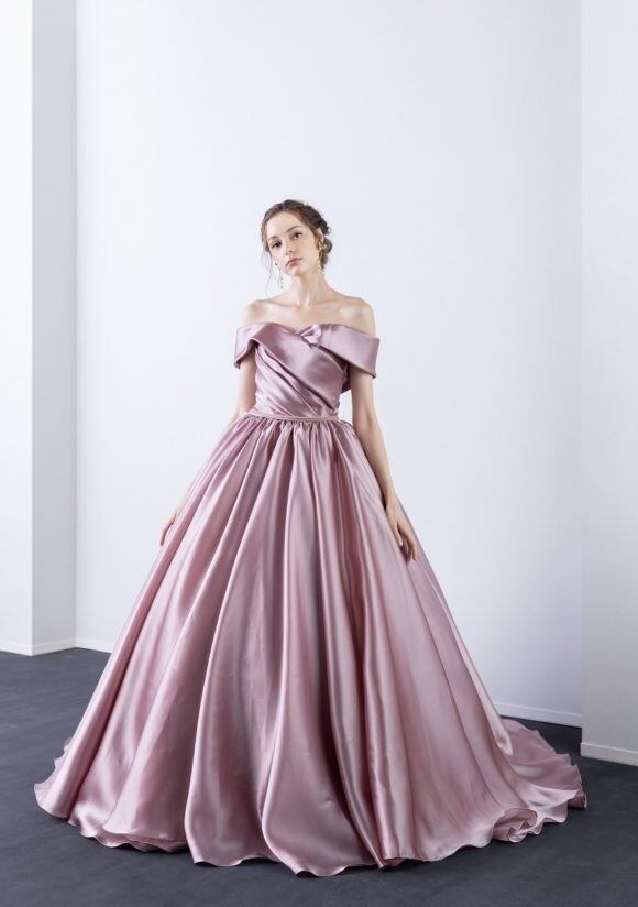 美品!ライトパープルカラードレス オフショルダー 美しいデコルテライン プリンセスライン パーティードレス 前撮り【色変更可能】