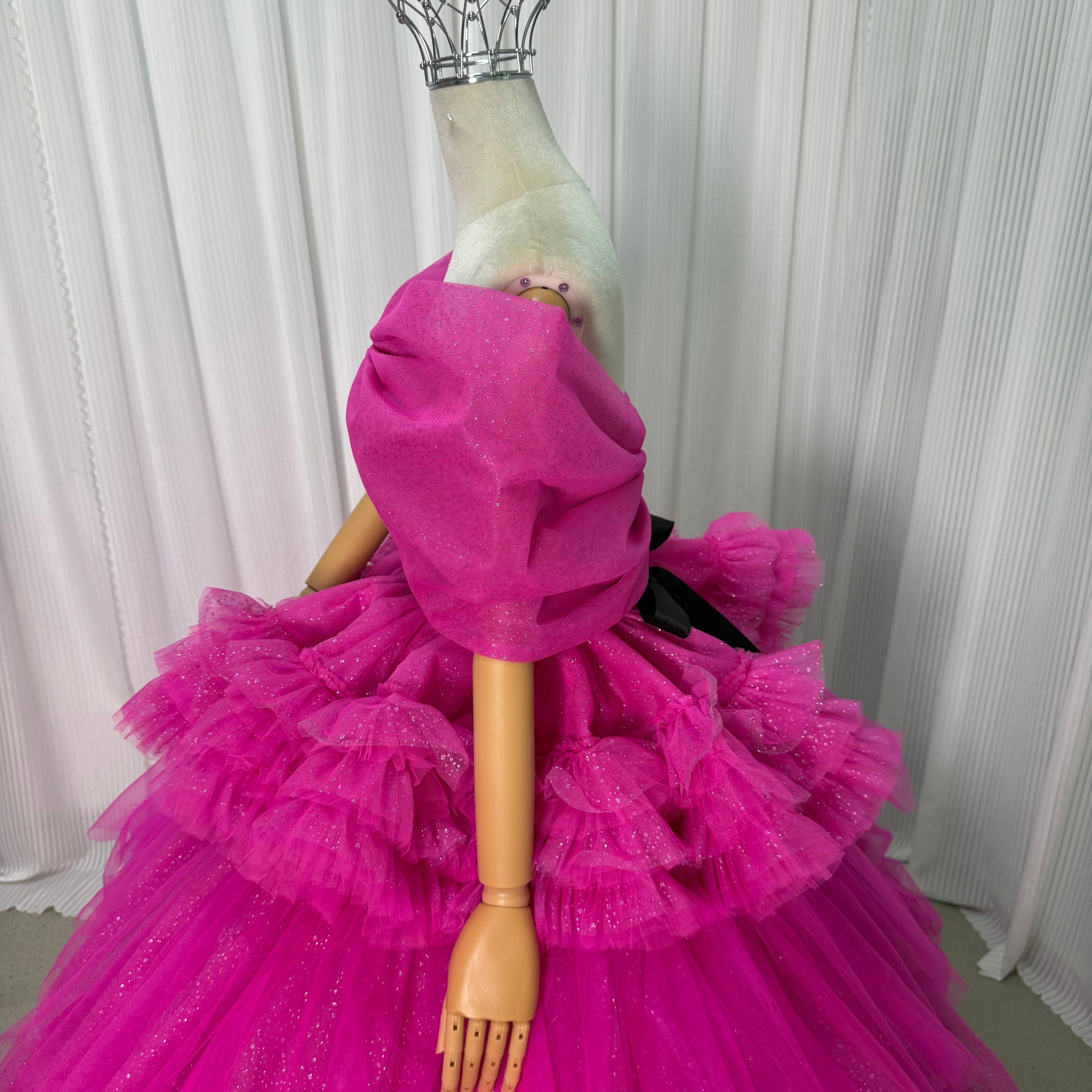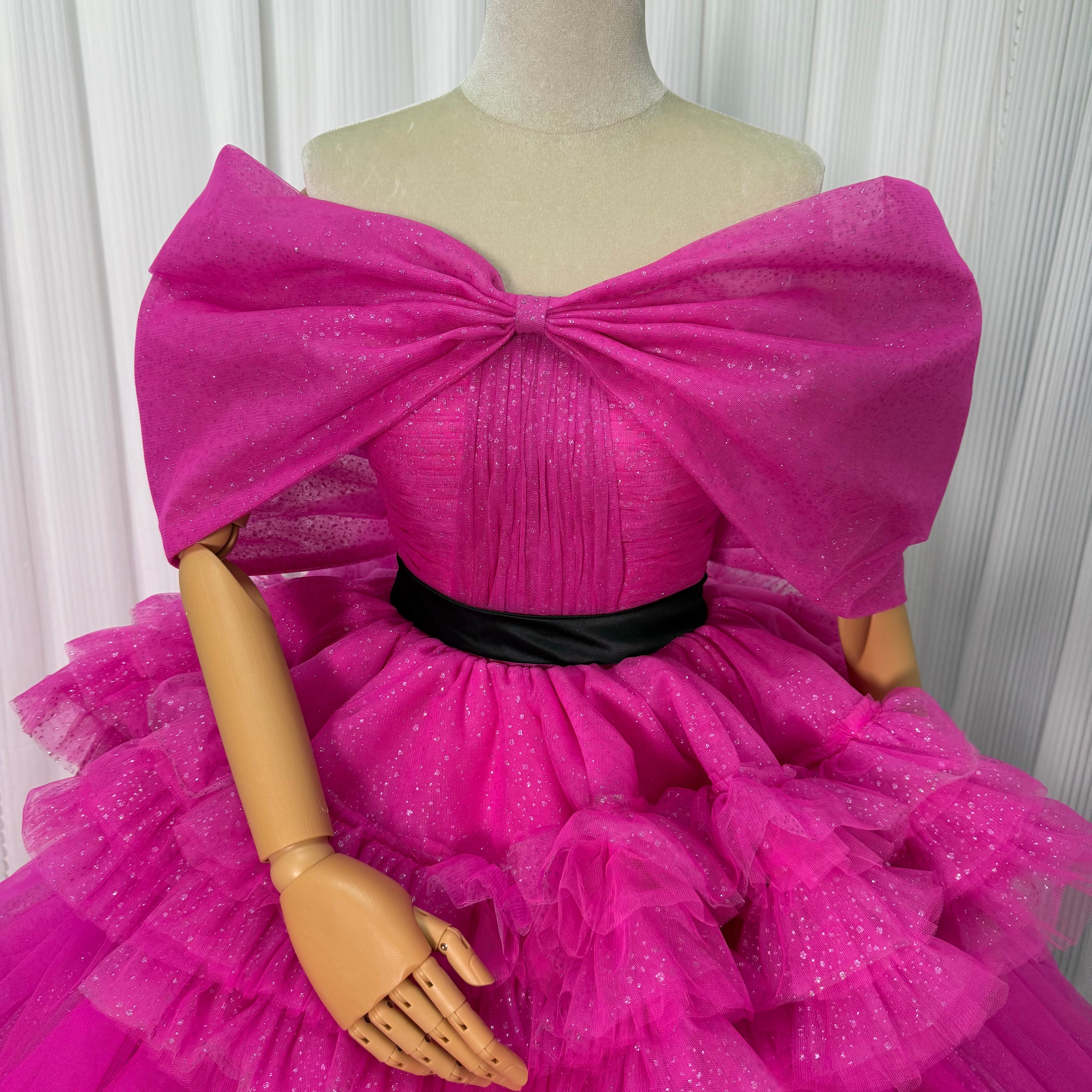 人気上昇! ボルドー色 オフショルダー もこもこ パール カラードレス チュールドレス オフショルダー フリルオフショルダー/前撮り/花嫁/結婚式