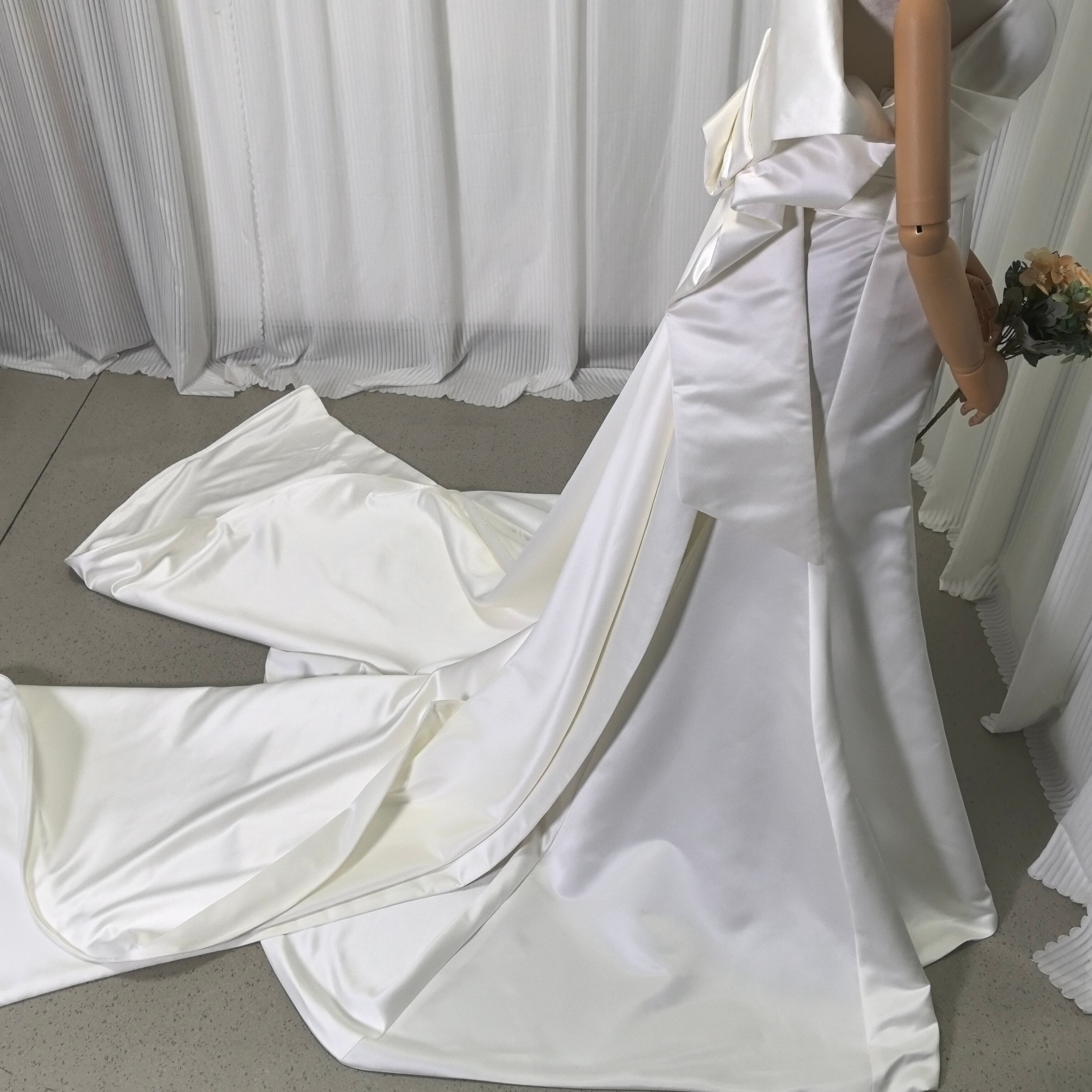 美品!⭐美しいバックスタイル⭐マーメイドドレス ウエディングドレス ふっくら柔らかなバックリボン ロングトレーン 結婚式