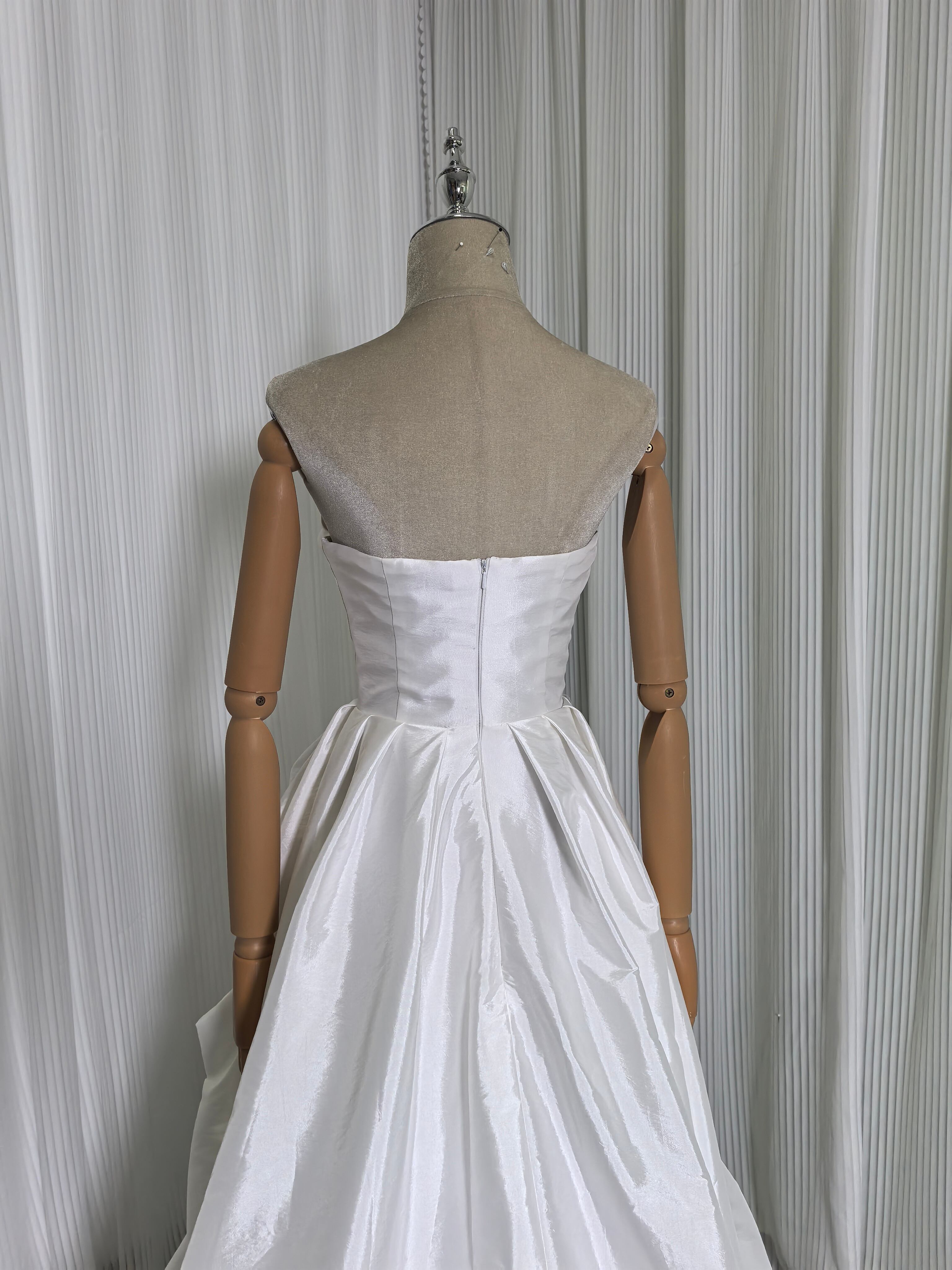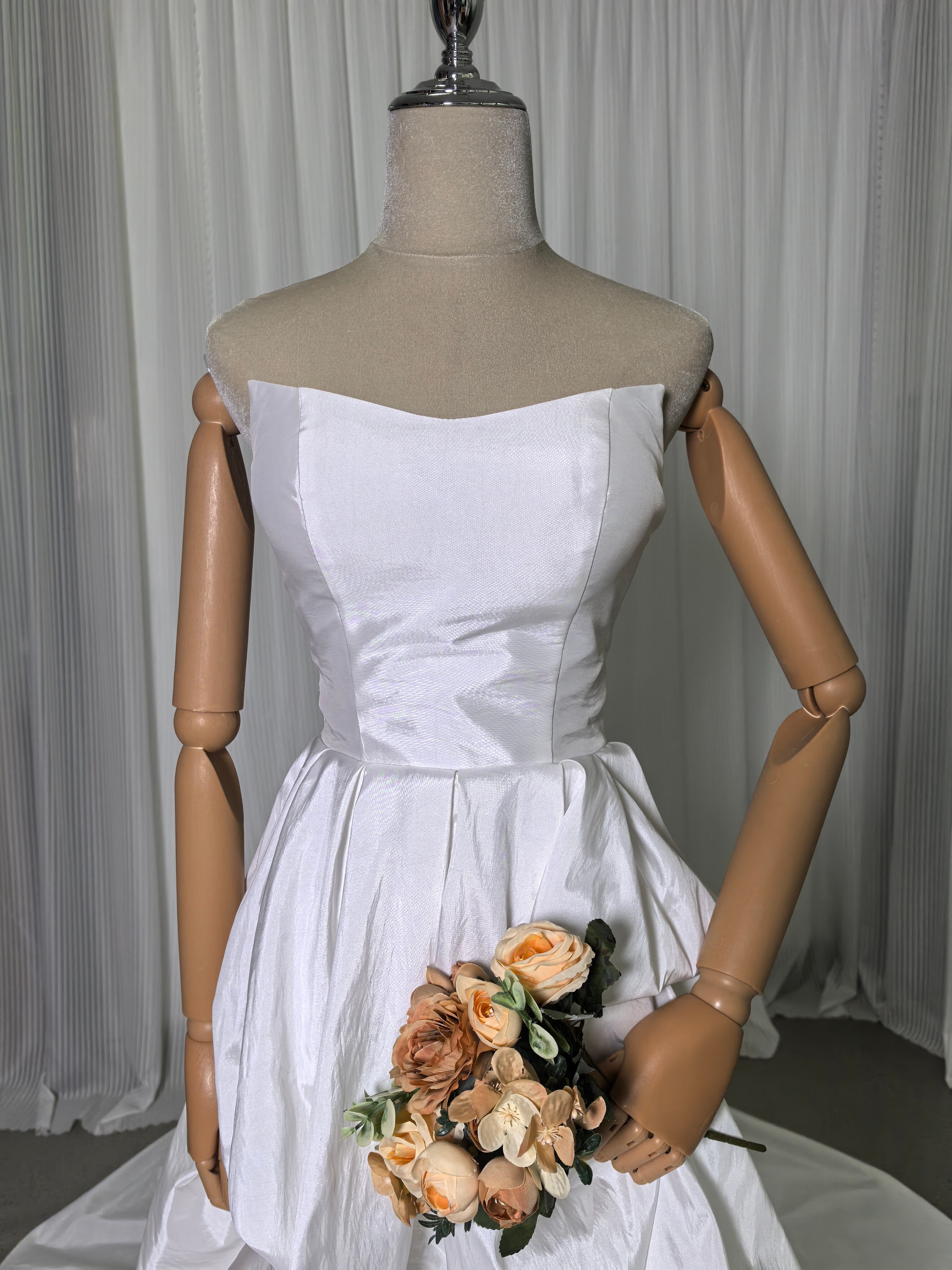 実例写真!美品! ホワイト シルクタフタ ウエディングドレス パーティードレス 2次会 前撮り 花嫁 挙式