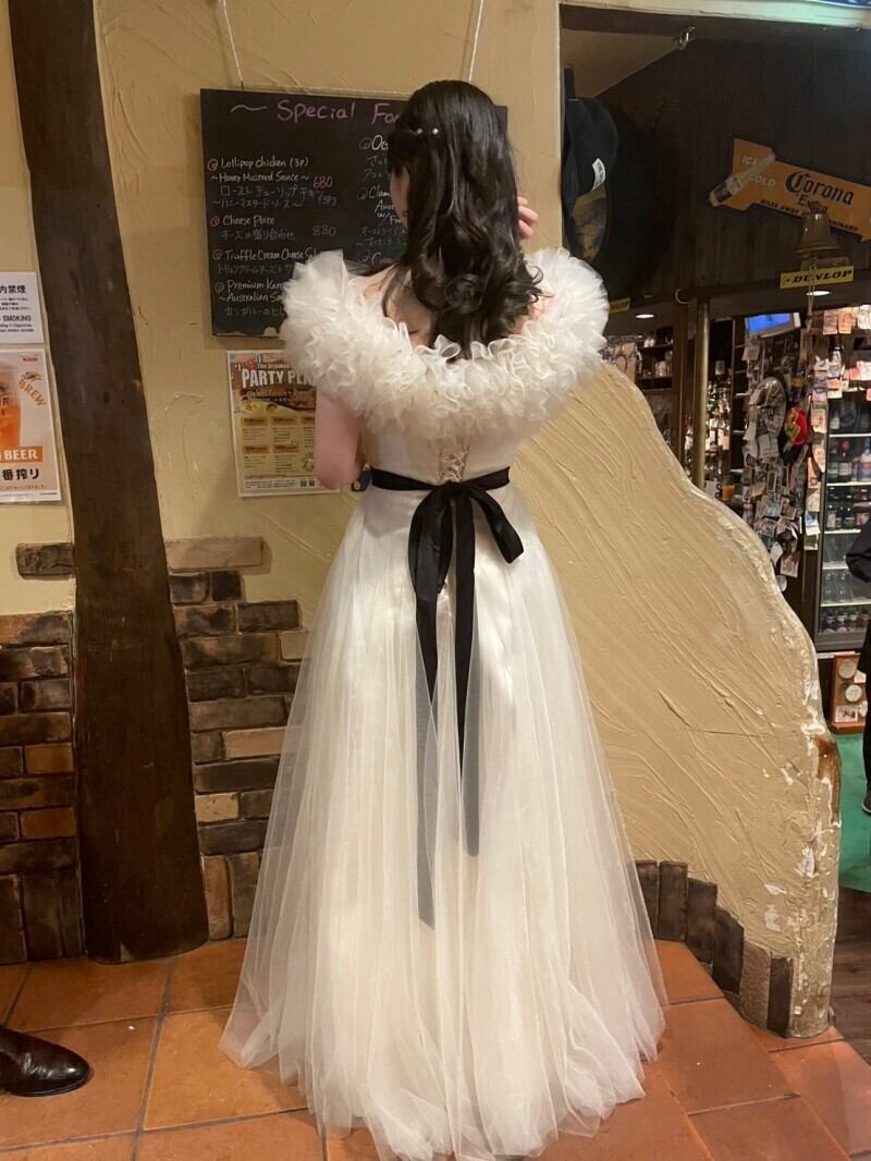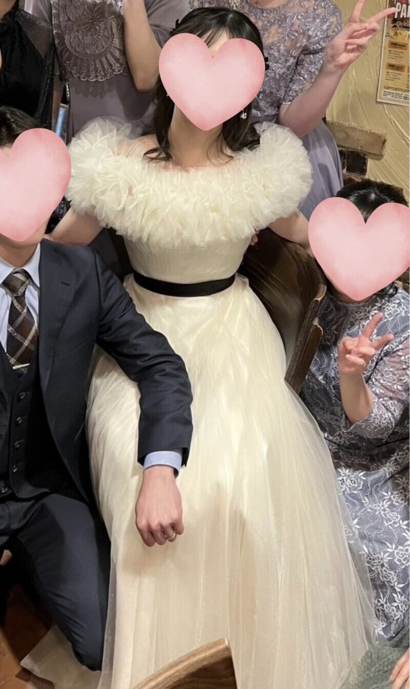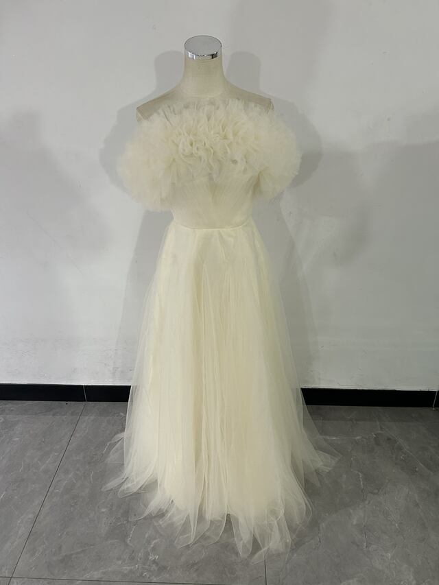 実例写真 美品!シャンパン色 カラードレス ソフトチュール パーティードレス2次会 前撮り 花嫁 挙式