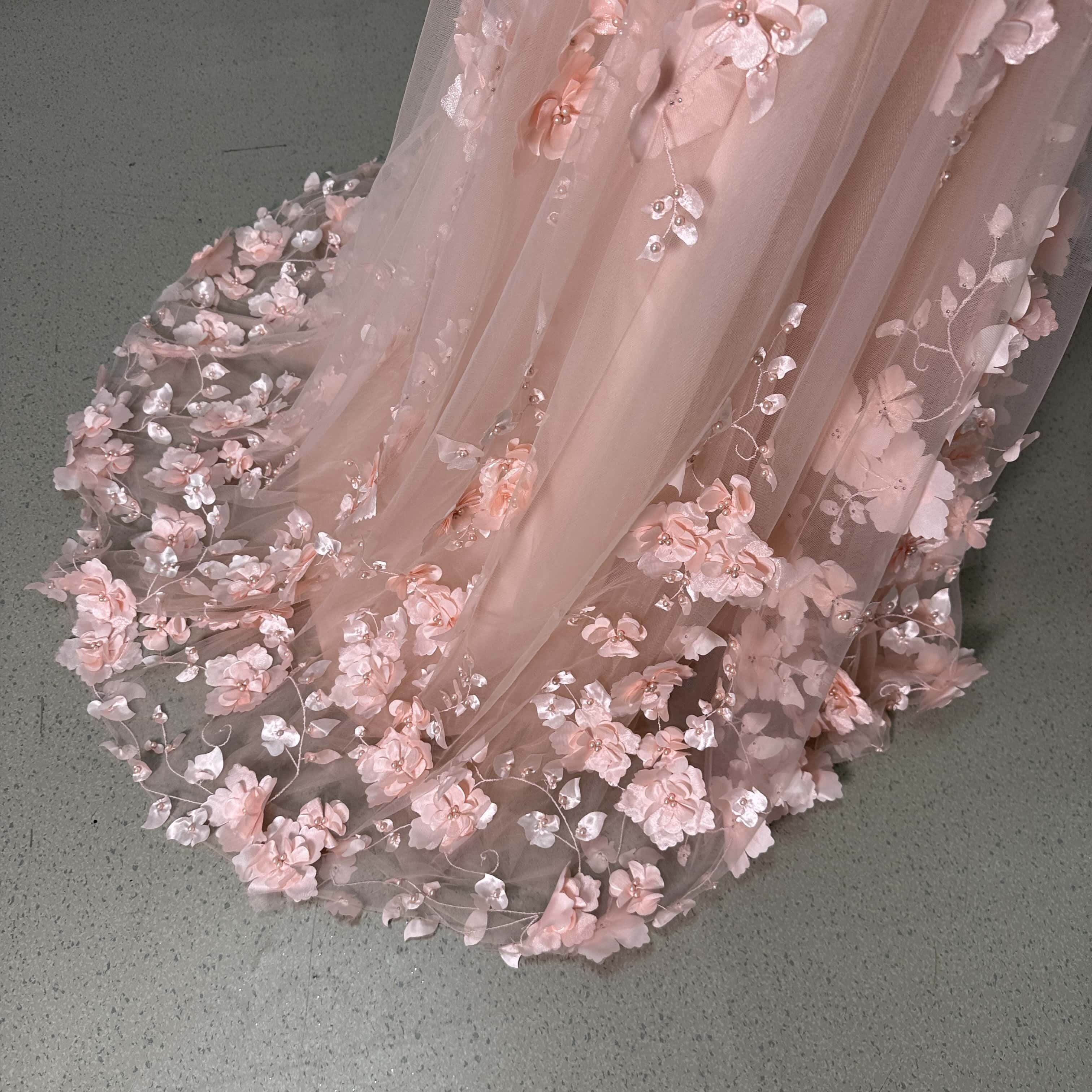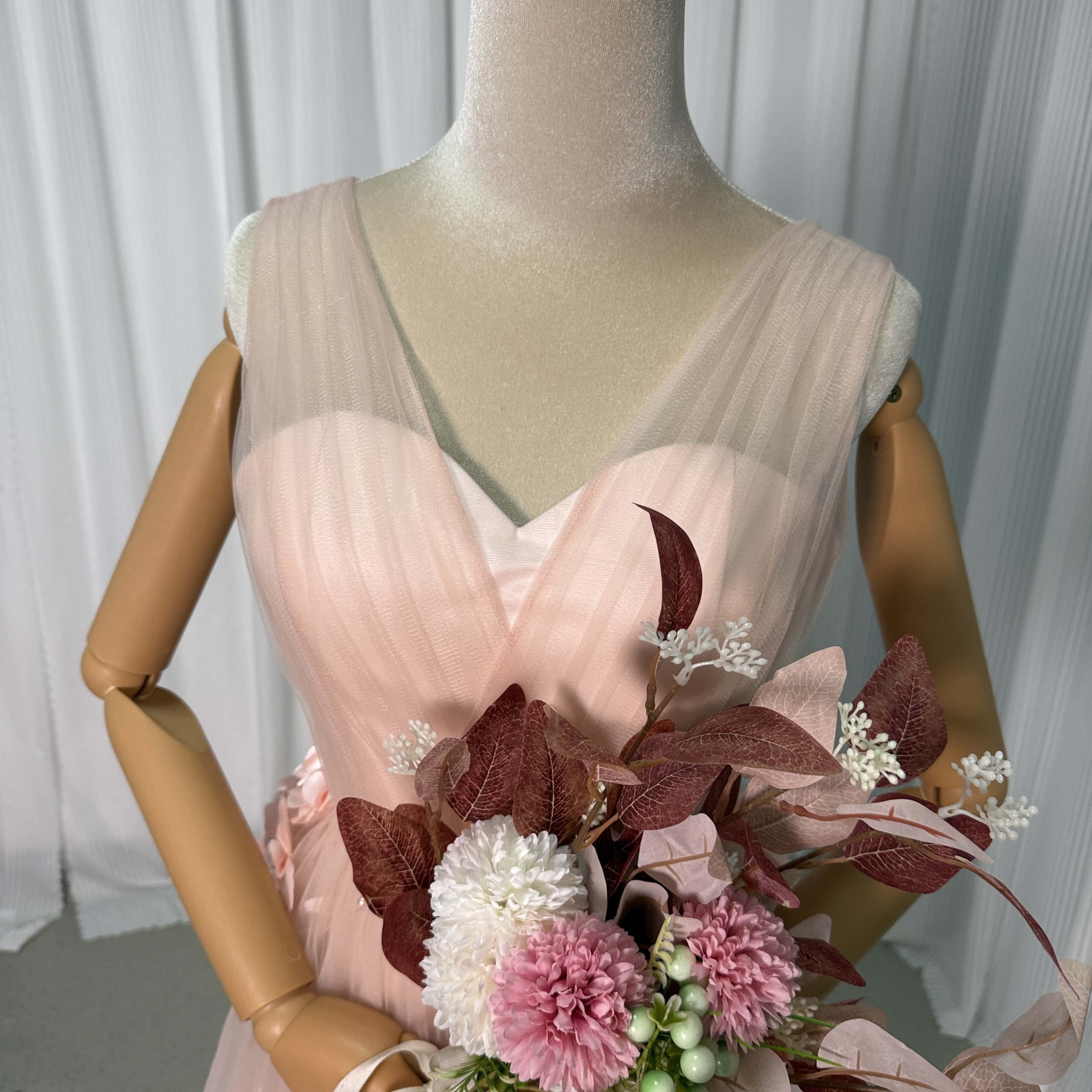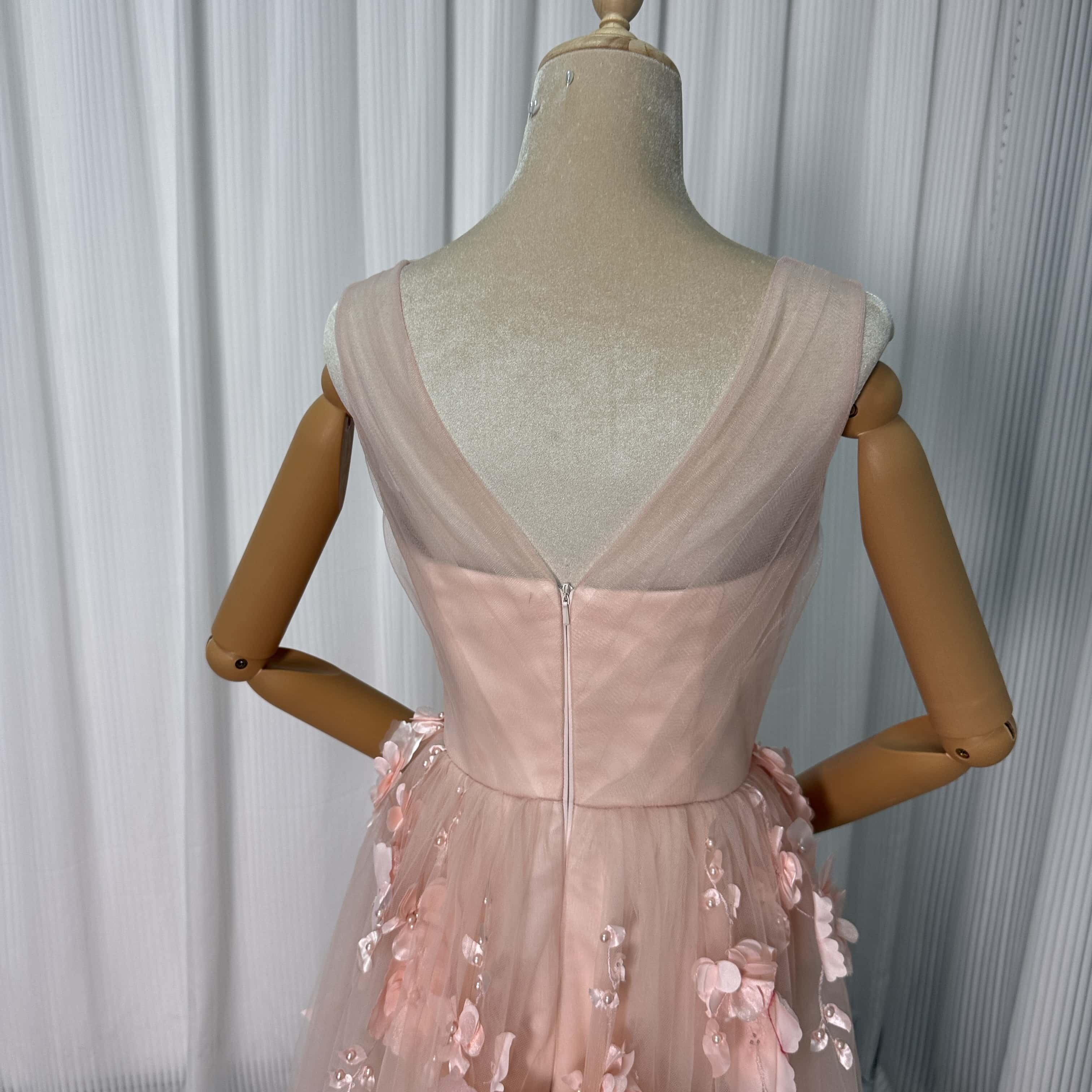 美品!ピンク カラードレス 3D立体レース刺繍 ソフトチュール パーティードレス2次会 前撮り 花嫁 挙式