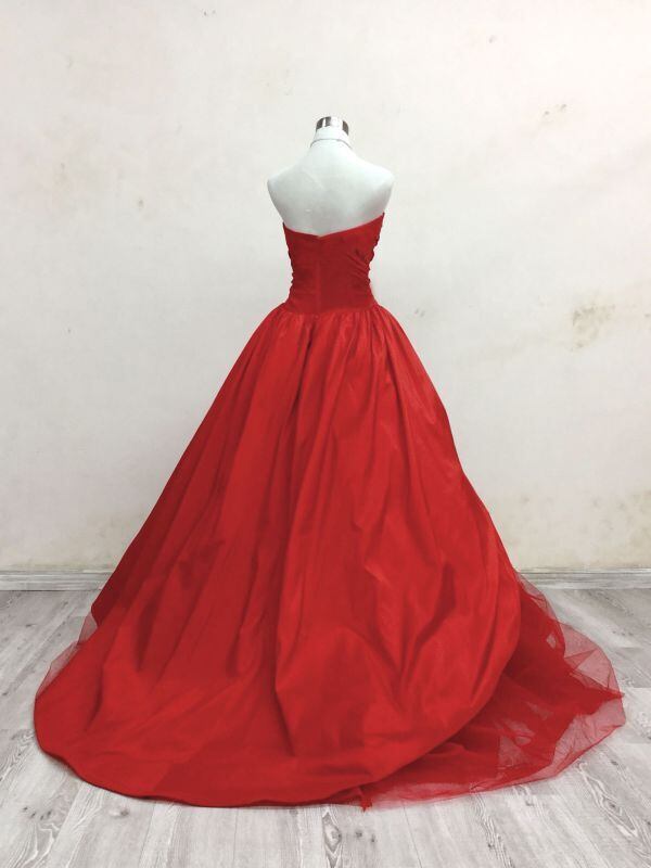 美品!パーティードレス 赤 レッドカラードレス ベアトップ コンサートドレス アシンメトリー風 ダンスドレス【色変更可能】