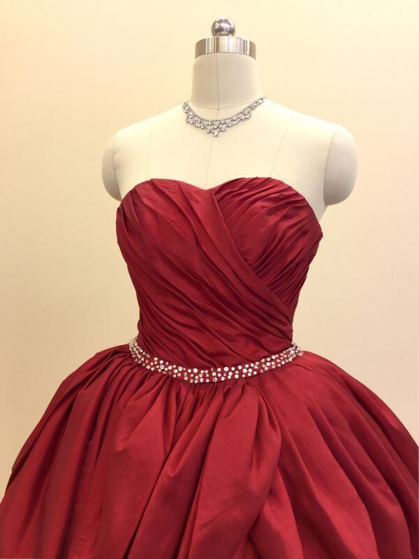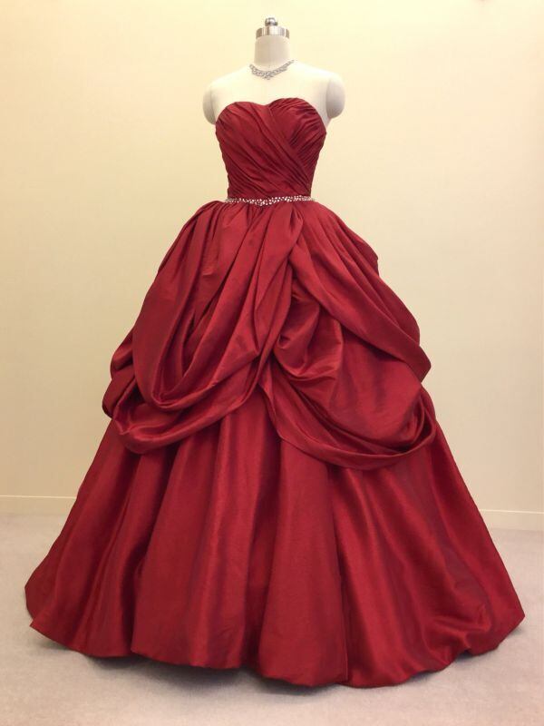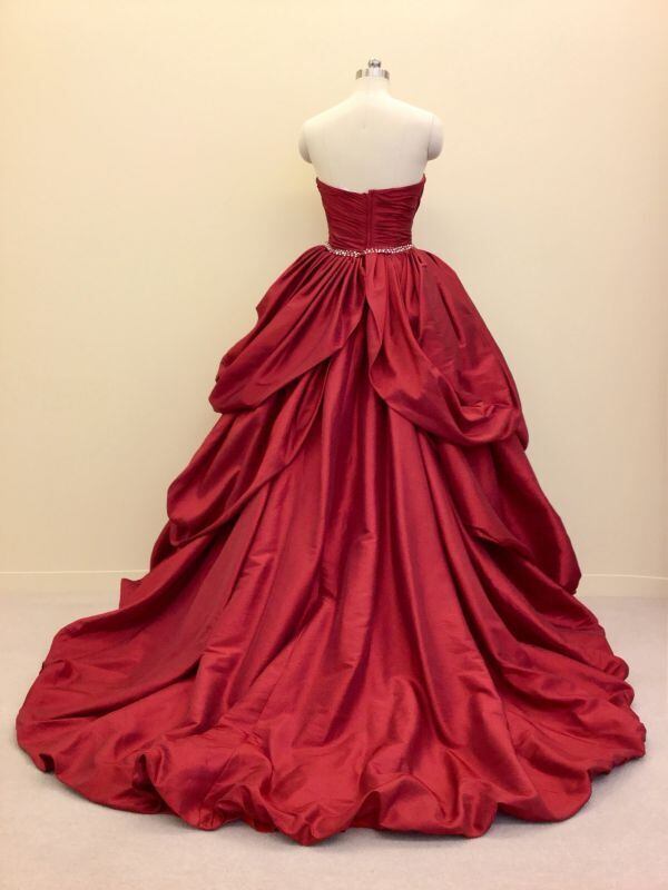 美品!パーティードレス 赤 レッドカラードレス バルーンスカート ベアトップ コンサートドレス ダンスドレス【色変更可能】