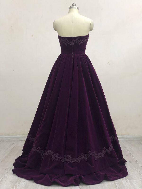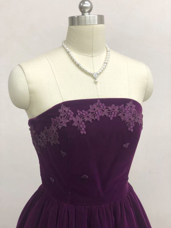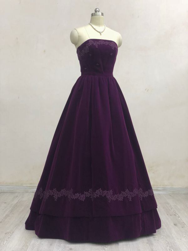 美品!パーティードレス ダークパープル ベルベット カラードレス ベアトップ コンサートドレス ダンスドレス【色変更可能】
