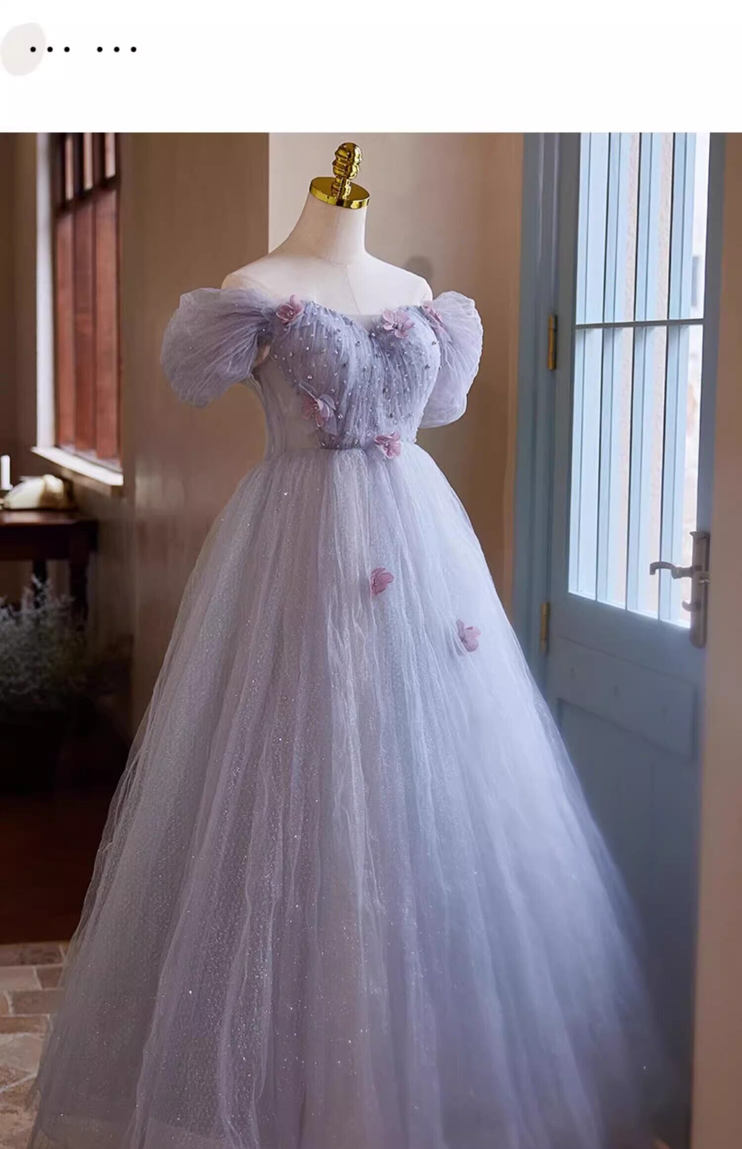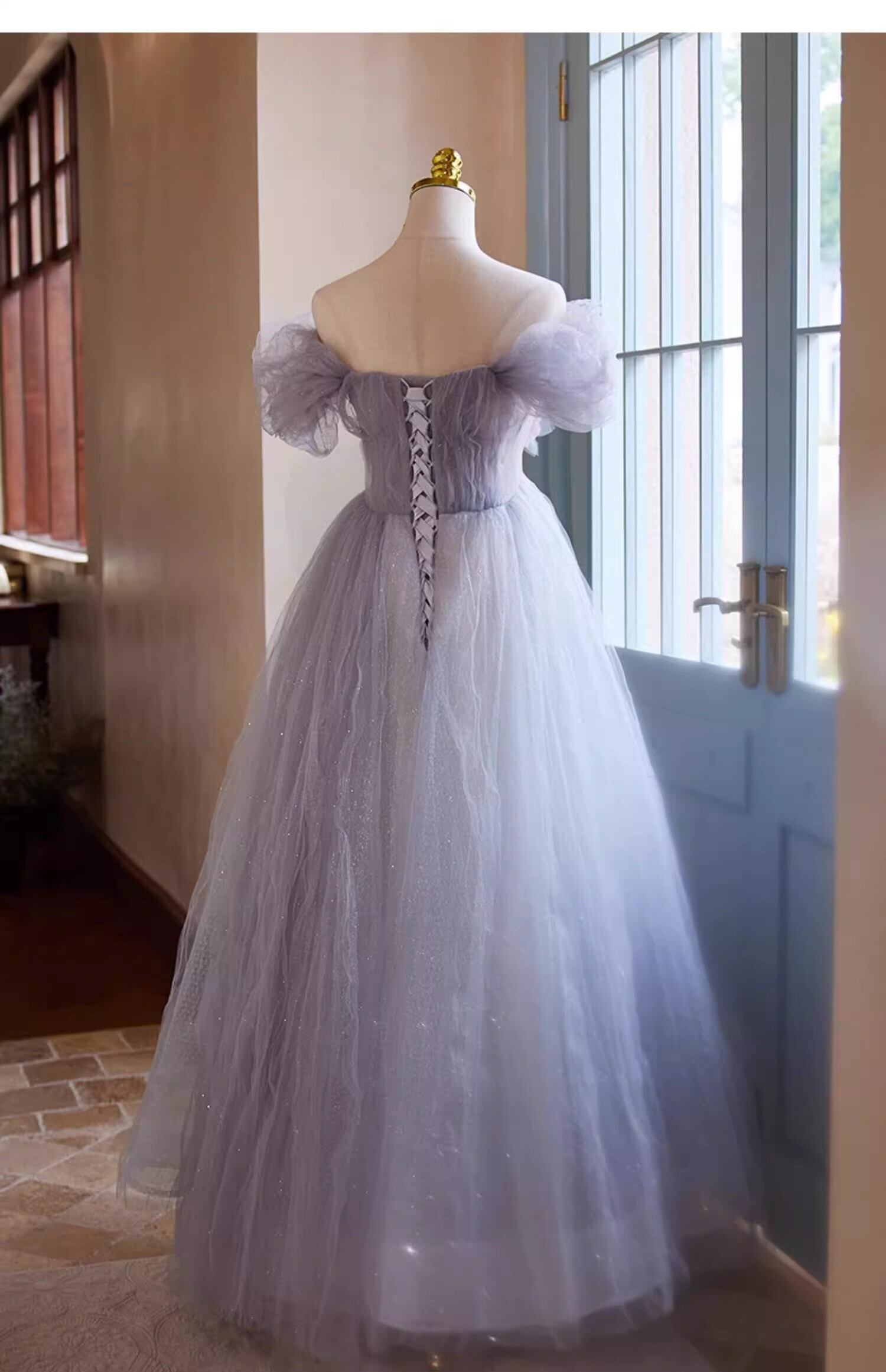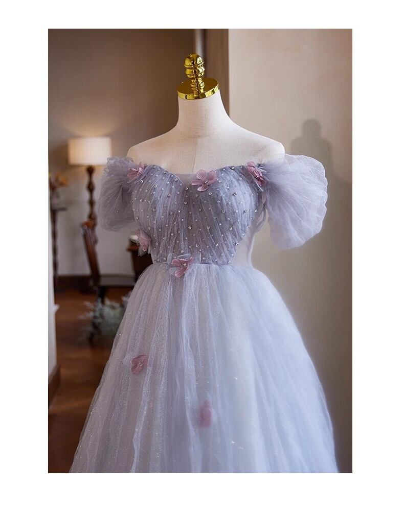 美品!紫オフショルダー パーティードレス カラードレス キラキラスパンコール 【オーダーメイド可能】フレアスカート