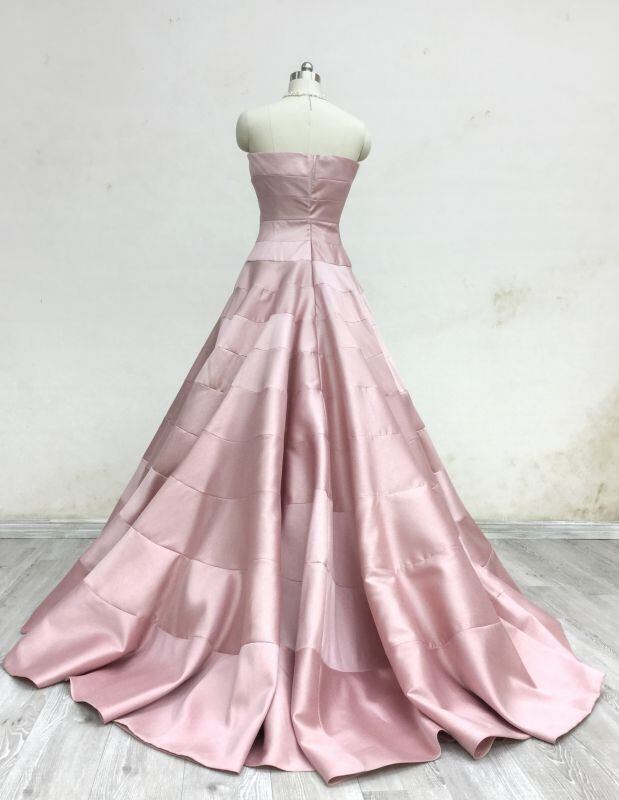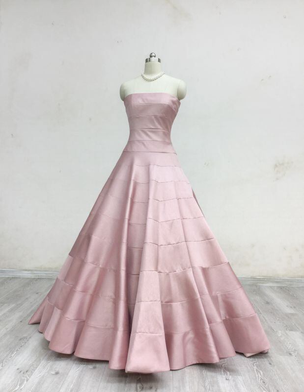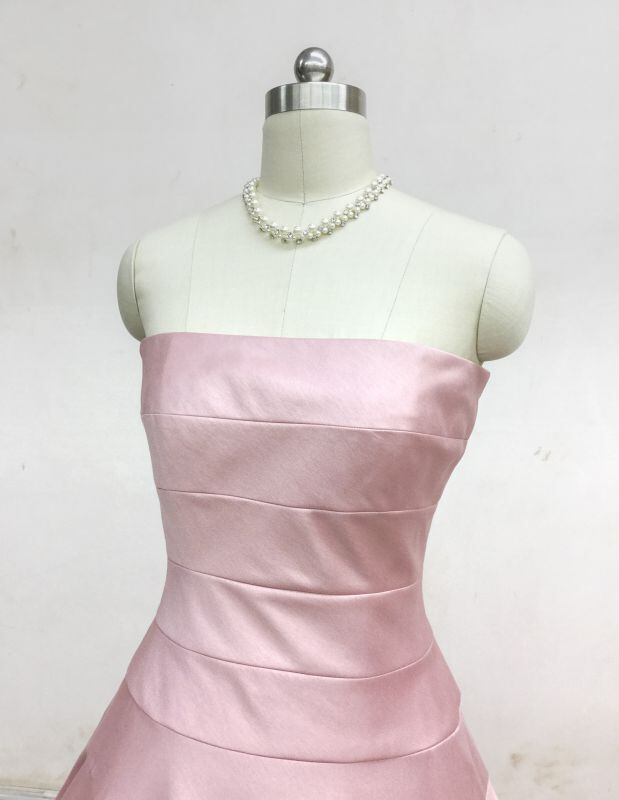 美品!桜色 薄ピンク カラードレス ベアトップ 優雅なシルエット ミディアムドレス パーティードレス ダンスドレス【色変更可能】