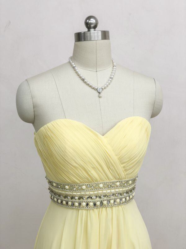 美品!パステルイエロー カラードレス ビスチェスタイル ビーディング ミディアムドレス パーティードレス ダンスドレス【色変更可能】