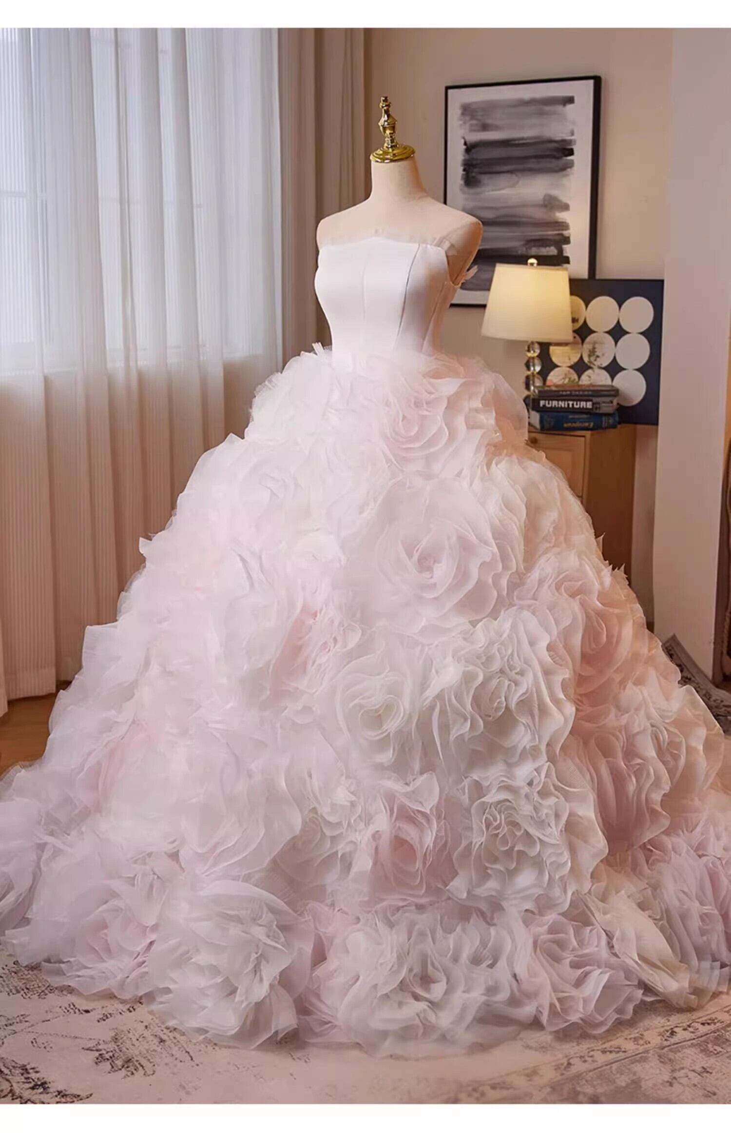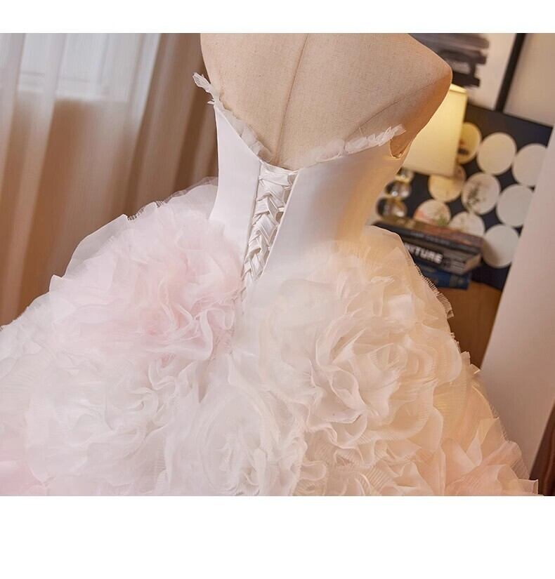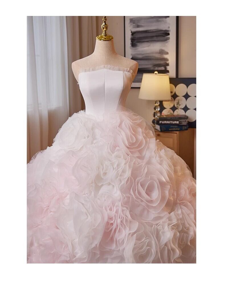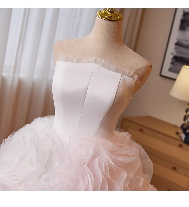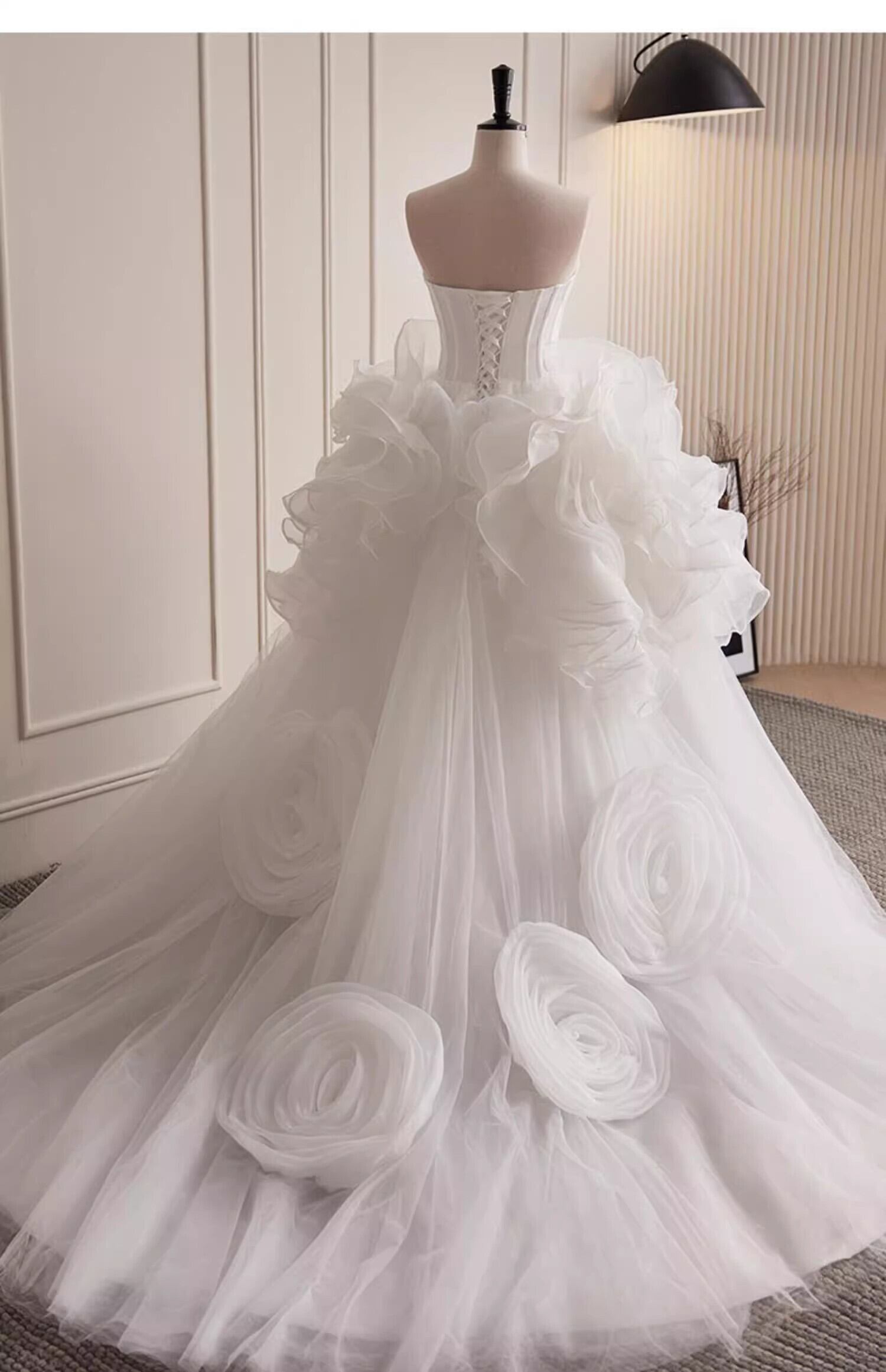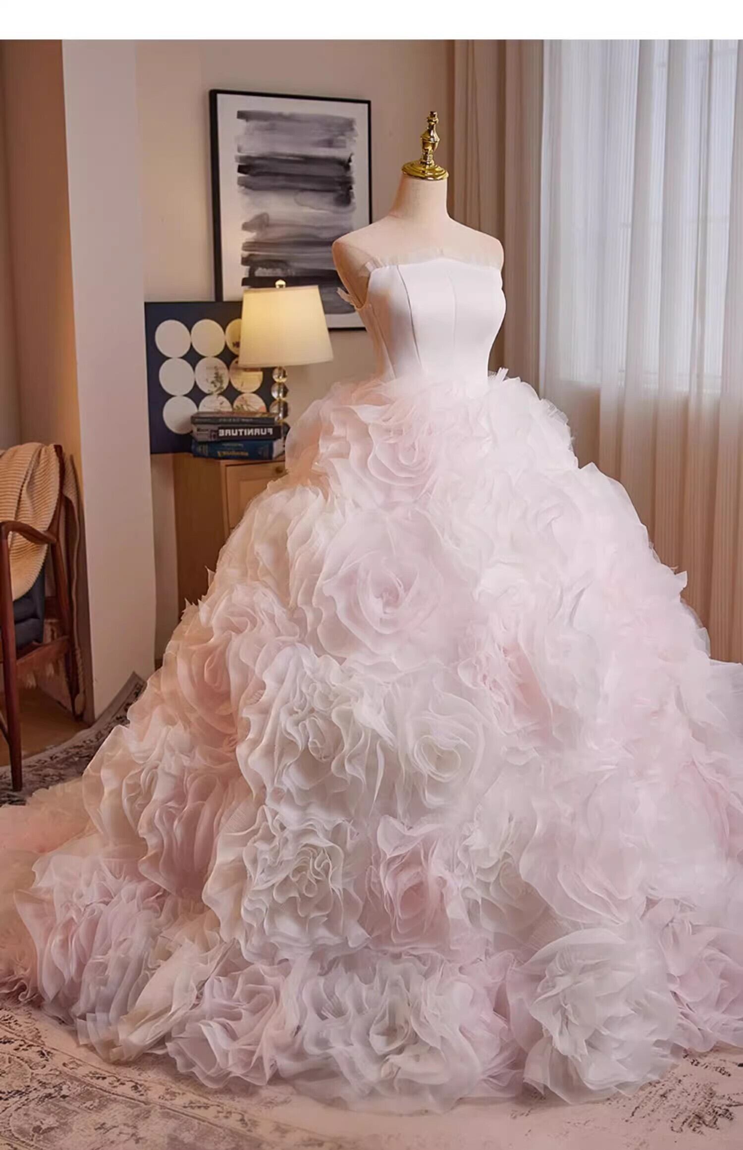 オフホワイト バラ もこもこカラードレスチュールドレスフリルオフショルダー お色直しふわふわ ボリュームドレスフレアスカート