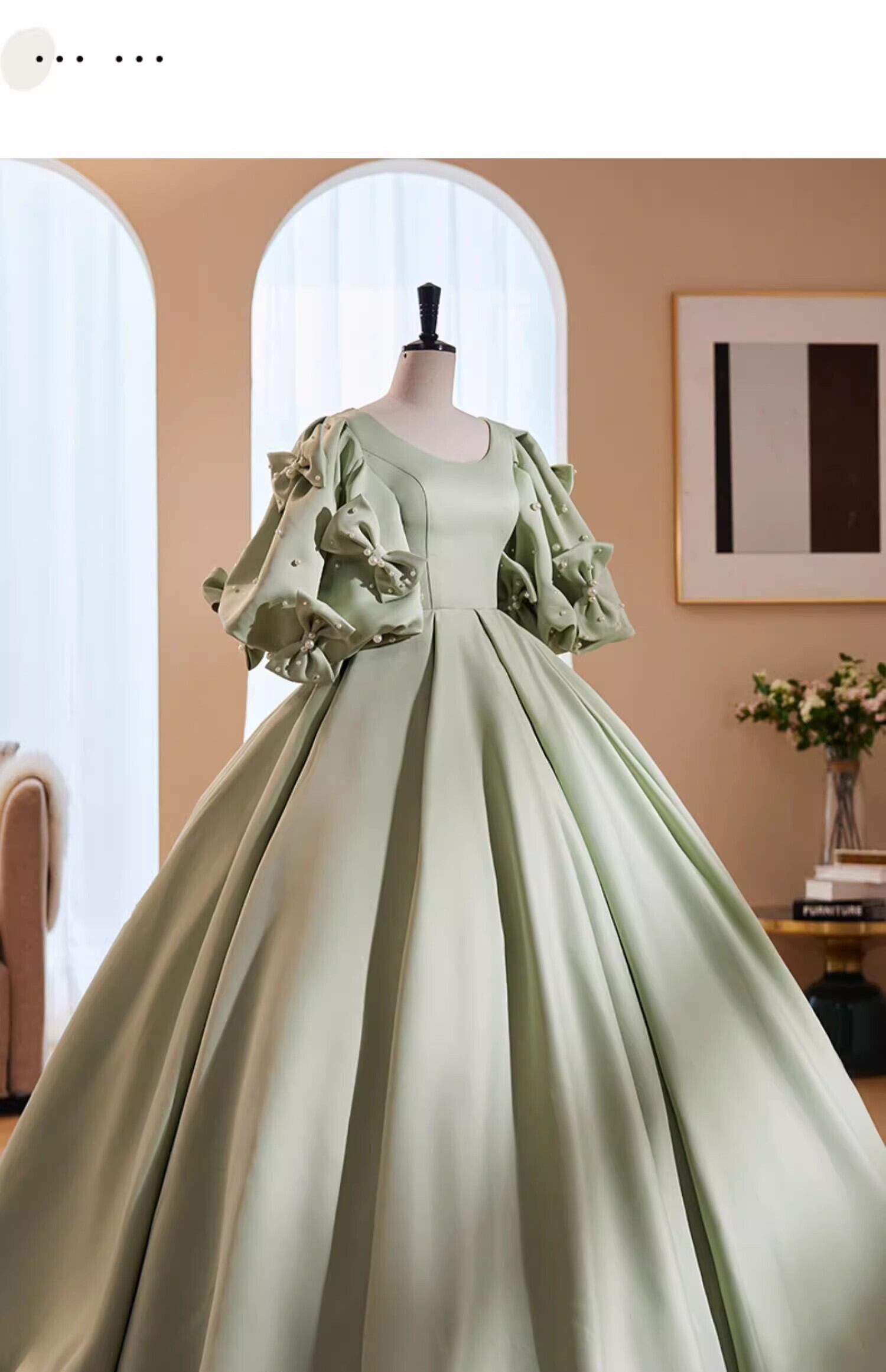美品!グリーン カラードレス パール リボン 優雅なシルエット パーティードレス ダンスドレス【色変更可能】