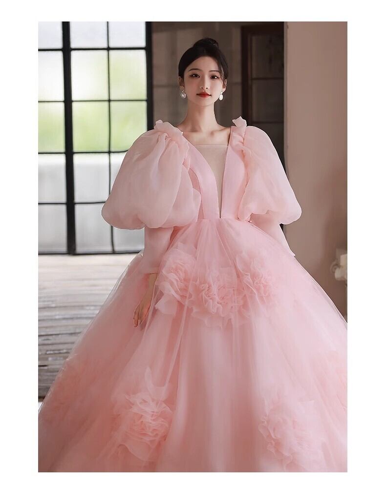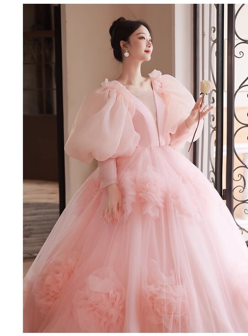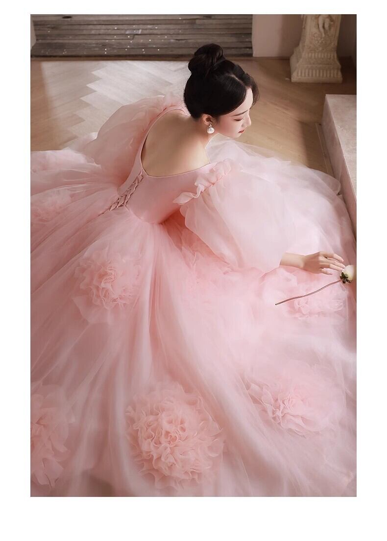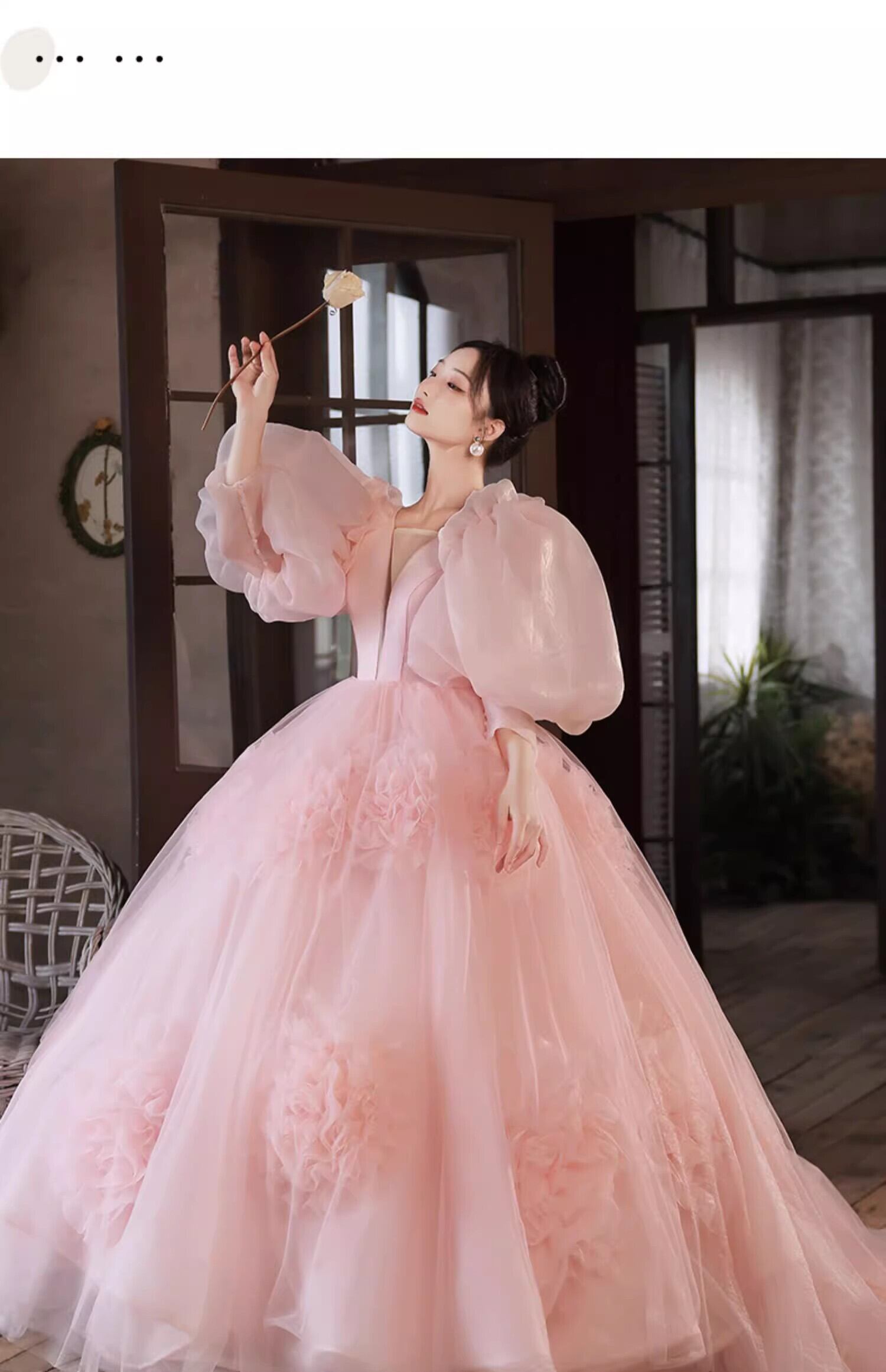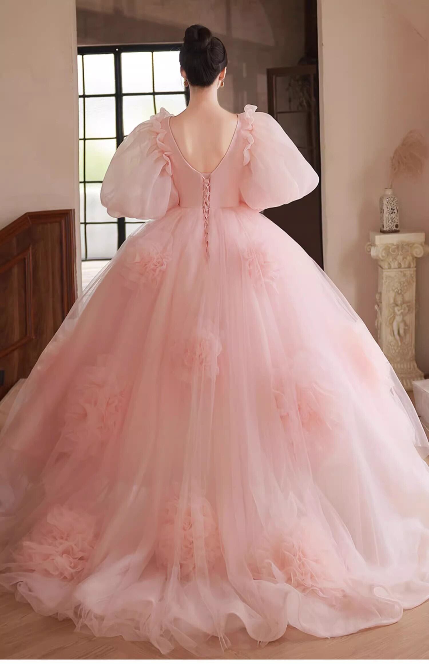 美品! ピンク バラ カラードレス リボン 優雅なシルエット パーティードレス ダンスドレス【色変更可能】フレアスカート
