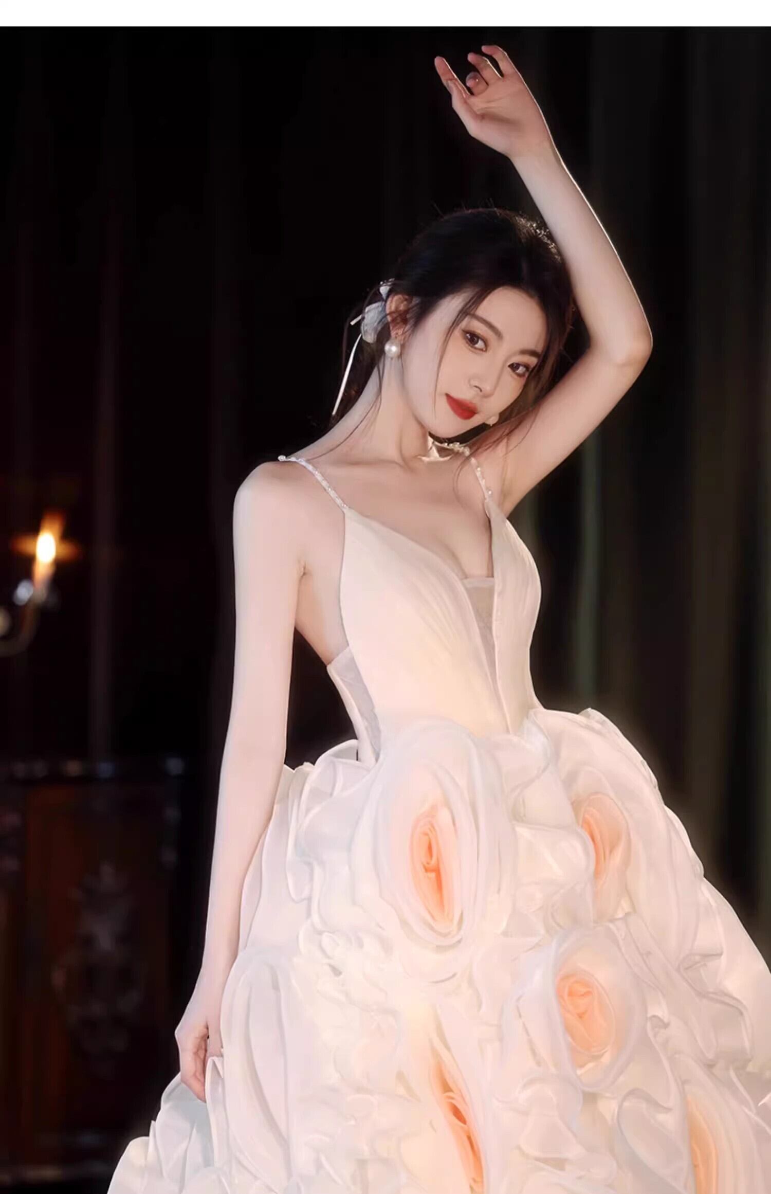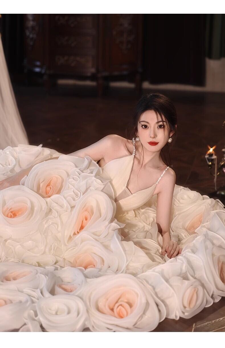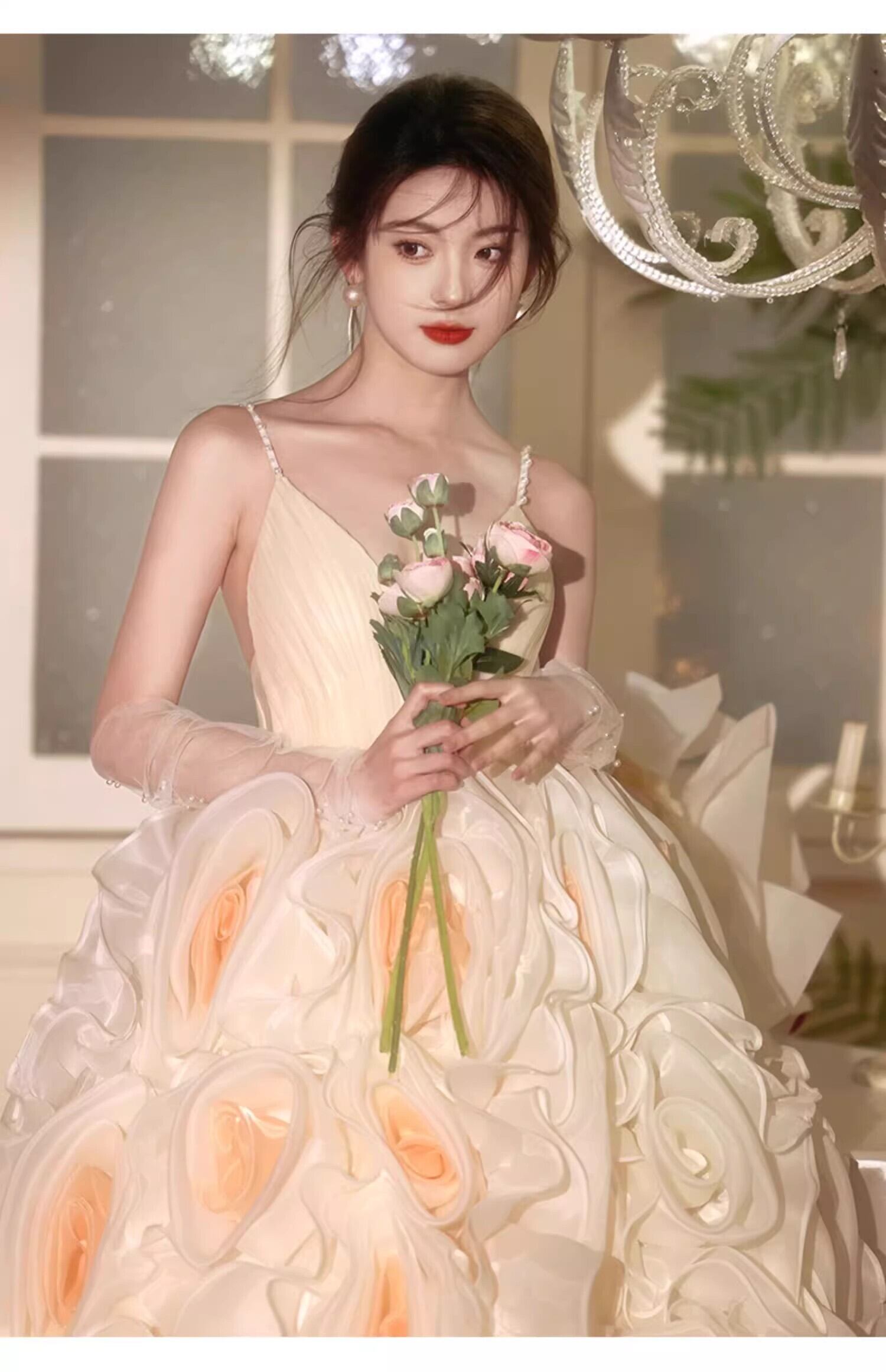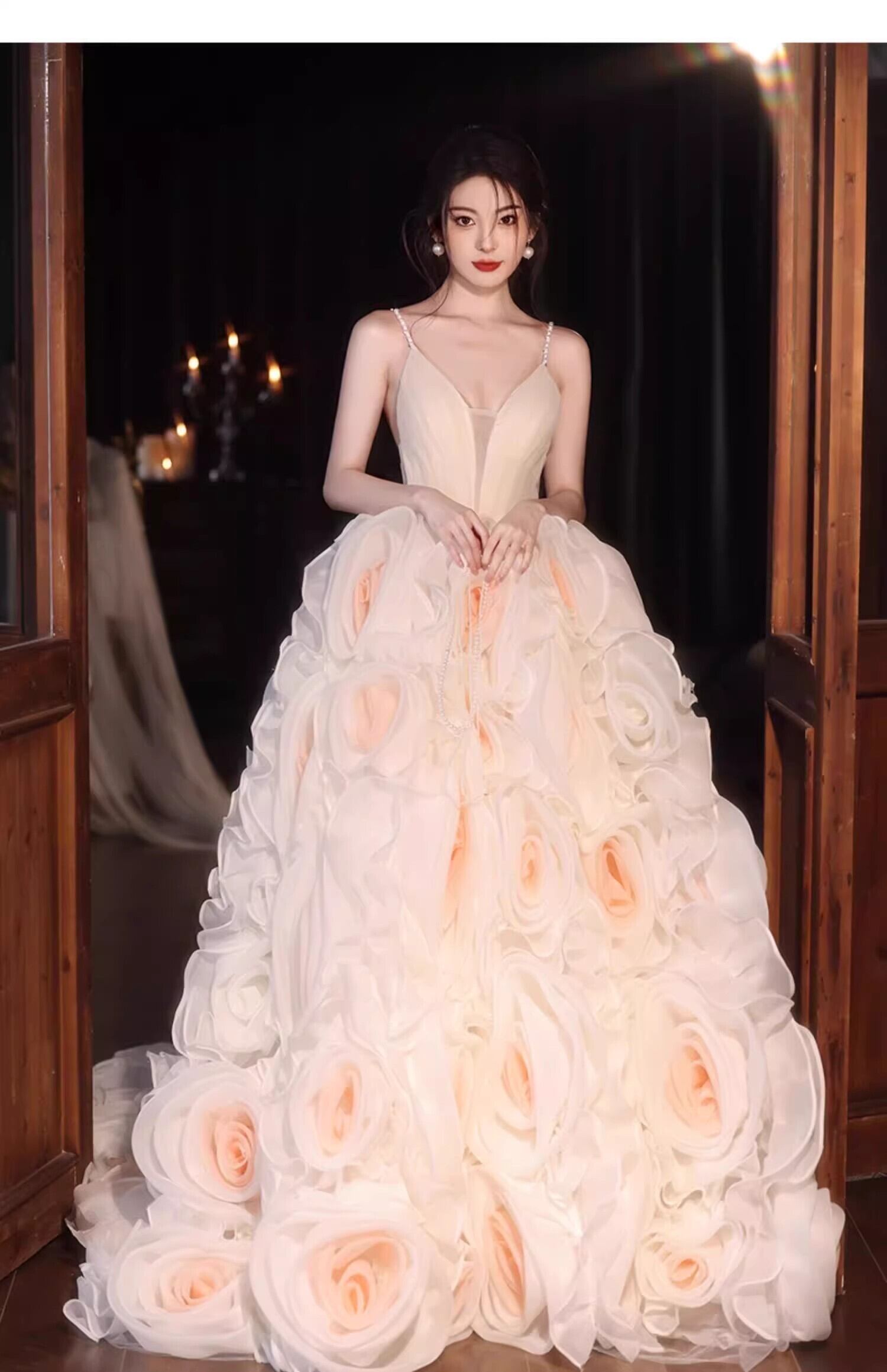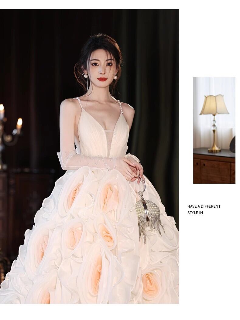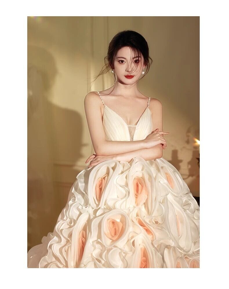 美品! バラ カラードレス パール キャミソール 優雅なシルエット パーティードレス ダンスドレス【色変更可能】フレアスカート