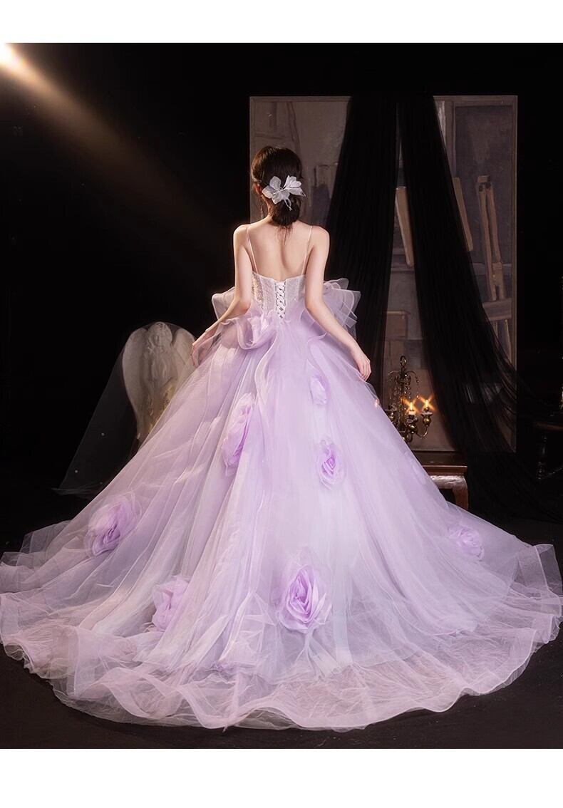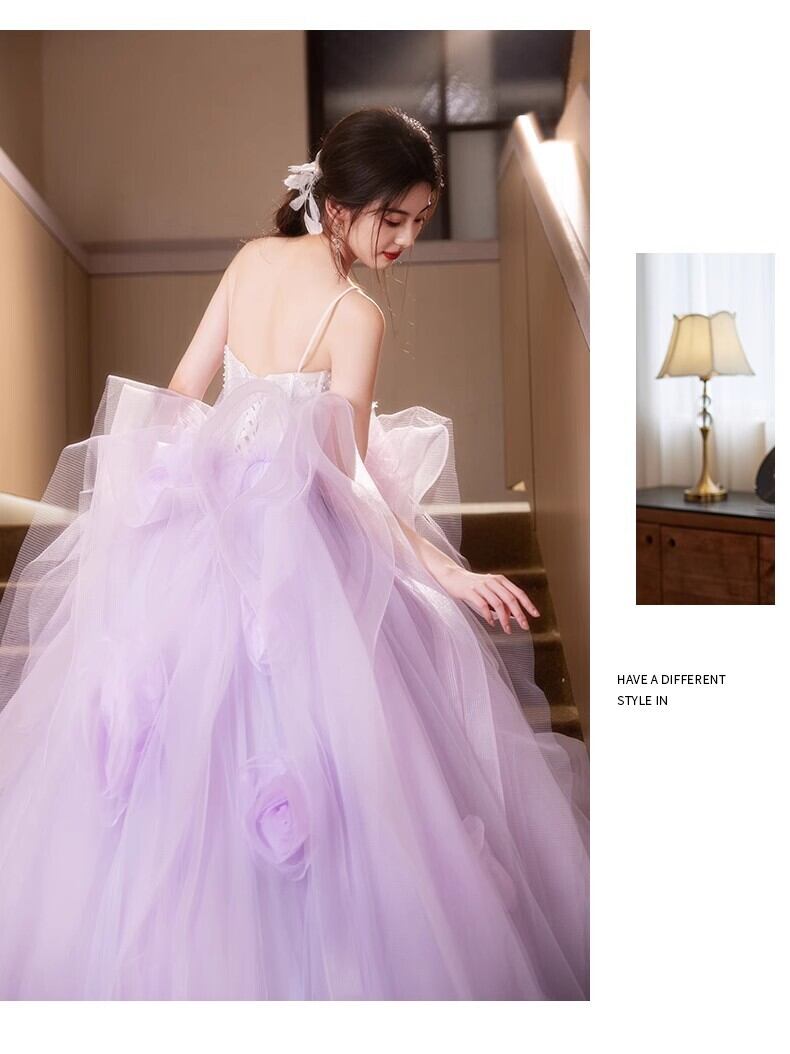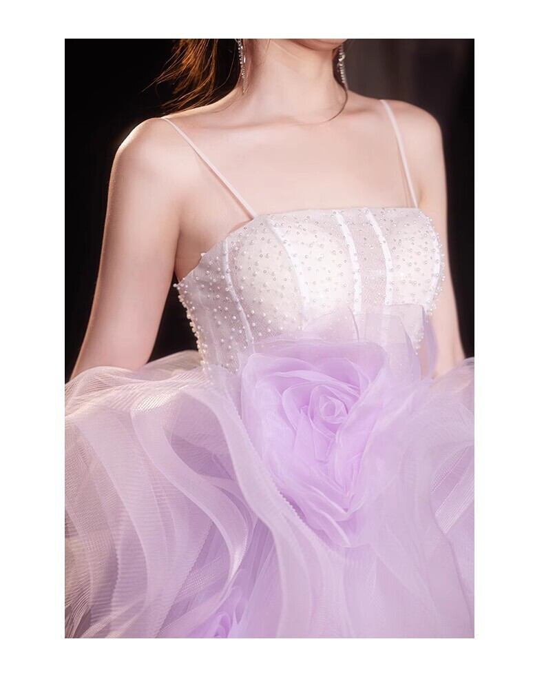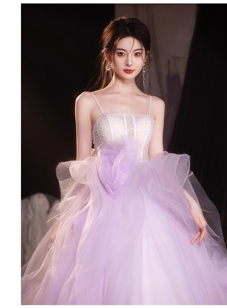 美品! 薄紫 キャミソール バラ カラードレス リボン 優雅なシルエット パーティードレス ダンスドレス【色変更可能】フレアスカート