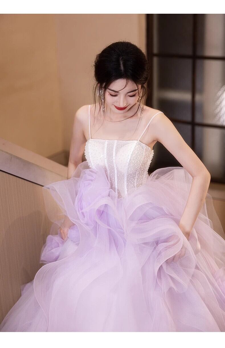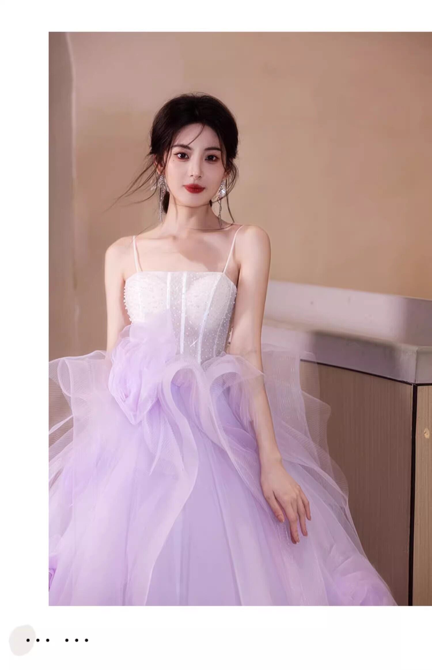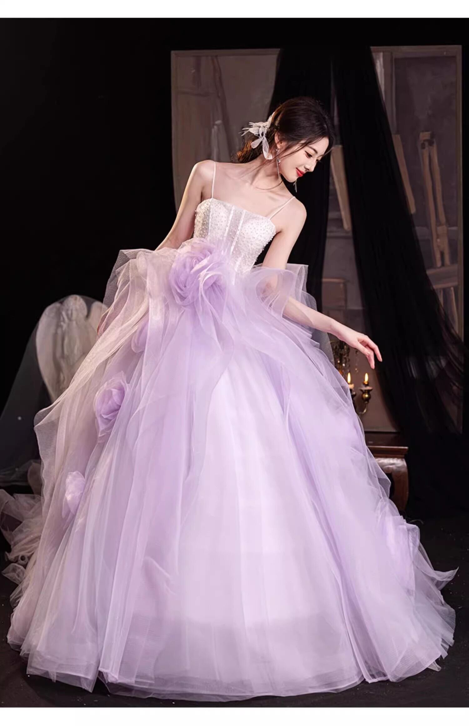 美品! 薄紫 キャミソール バラ カラードレス リボン 優雅なシルエット パーティードレス ダンスドレス【色変更可能】フレアスカート
