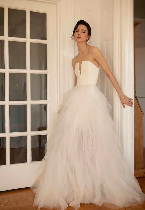 美品!Vカット ウエディングドレス チュールスカート フリルドレス セクシー Aラインドレス パーティードレス ミディアムドレス