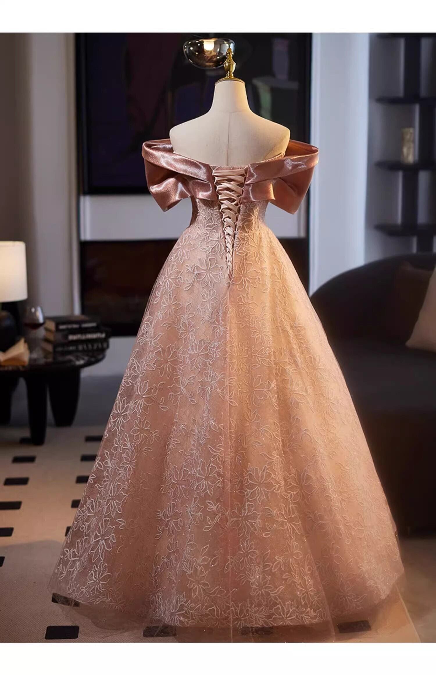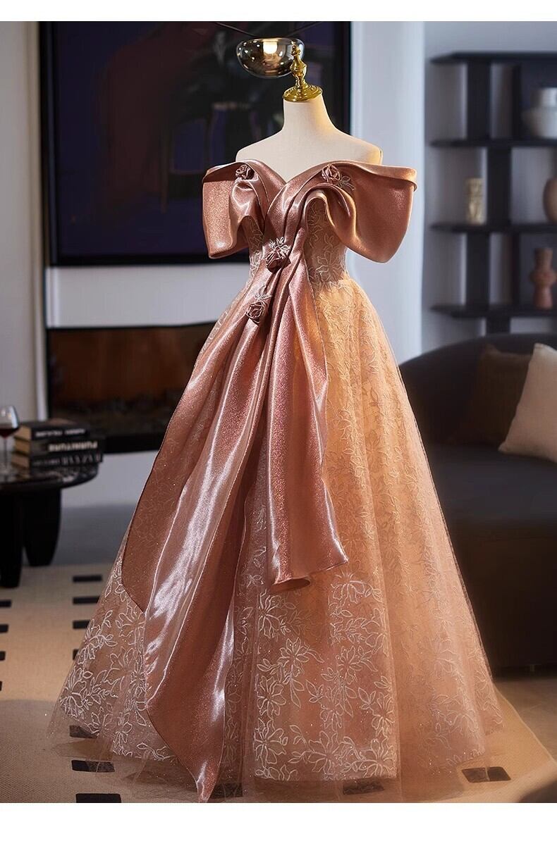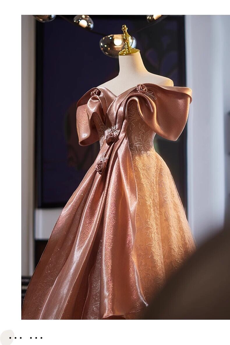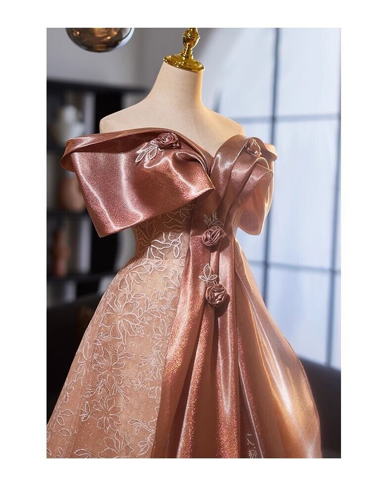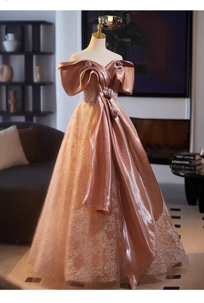 シャンパン色 バラ 3D立体レース刺繍 カラードレス 優雅なシルエット パーティードレス ダンスドレス【色変更可能】フレアスカート