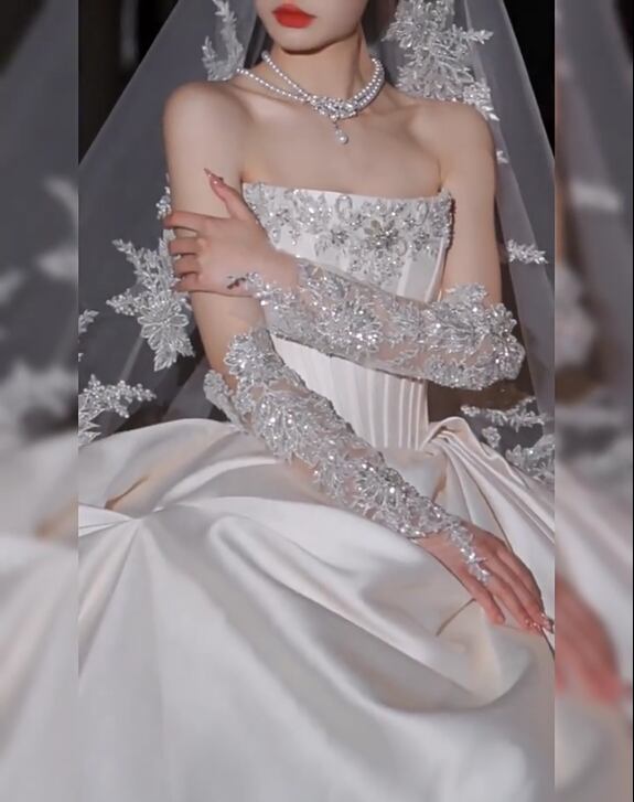 豪華!ビジュードレス ウエディングドレス プリンセスライン ビーディング ビスチェスタイル 美しいボディライン パーティードレス