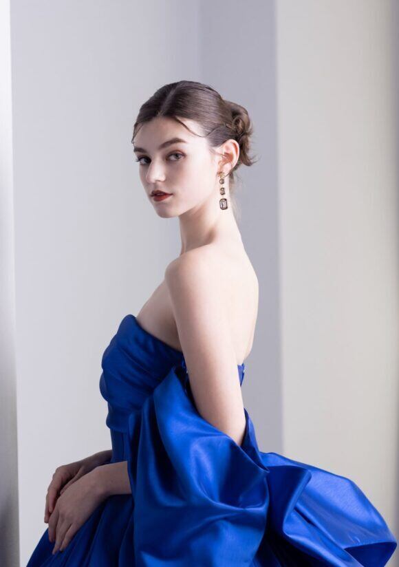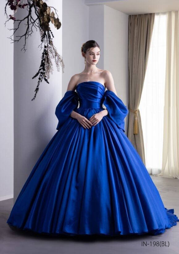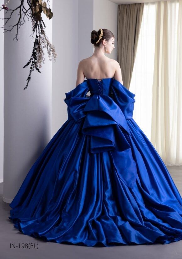 上品!ロイヤルブルーカラードレス 付け袖 プリンセスライン バックリボン パーティードレス 演奏ドレス【色変更可能】