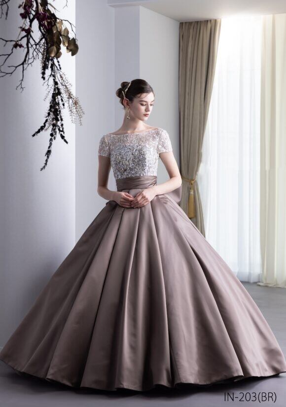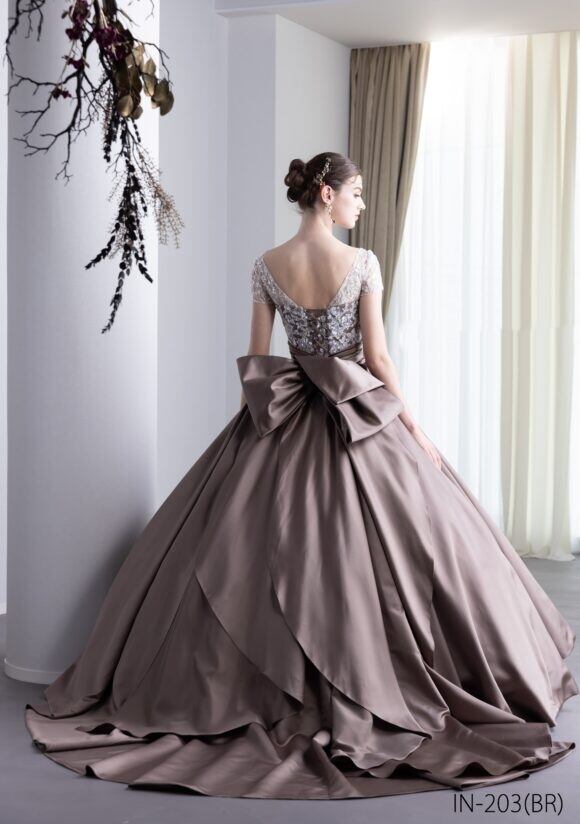 上品!アースカラー ブラウンカラードレス ボレロ トップス プリンセスライン バックリボン パーティードレス 演奏ドレス【色変更可能】
