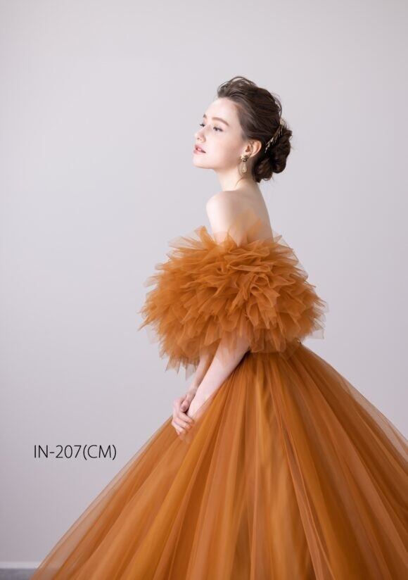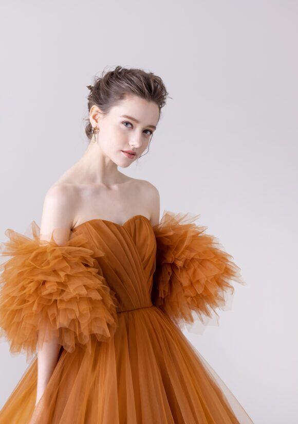 美品!マスタード色 イエローカラードレス ふわふわスリーブ もふもふ裾 パーティードレス ボリュームドレス【色変更可能】