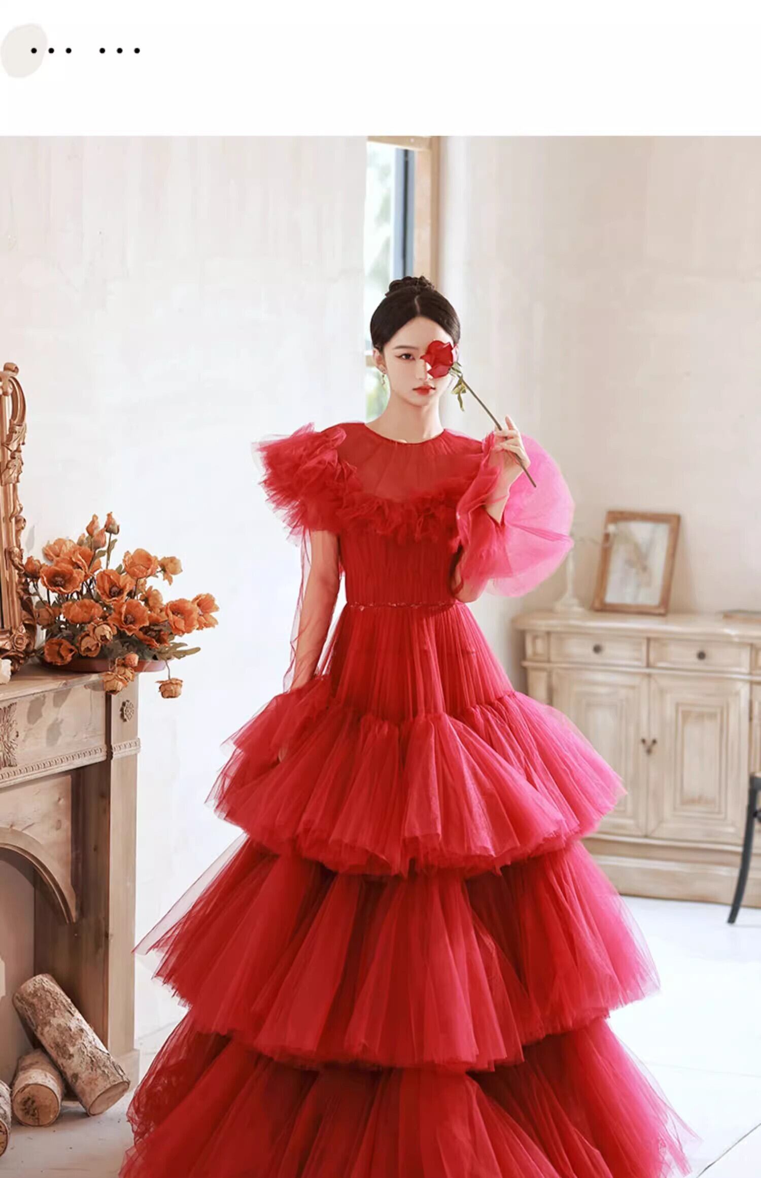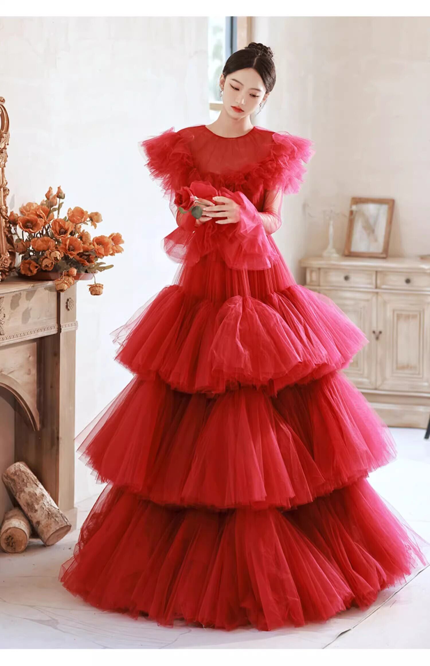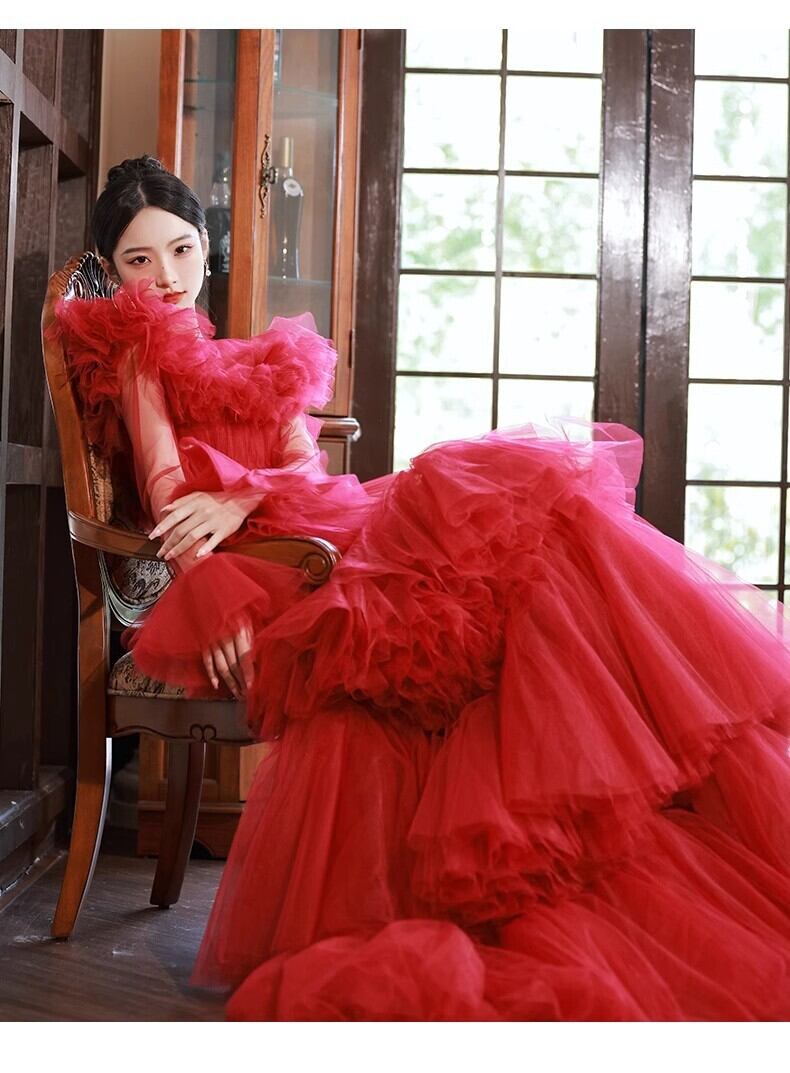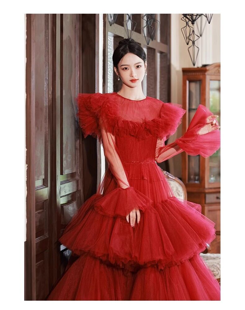上品!ビビットカラードレス プリンセスライン ミ パーティードレス【色変更可能】ボリュームドレス