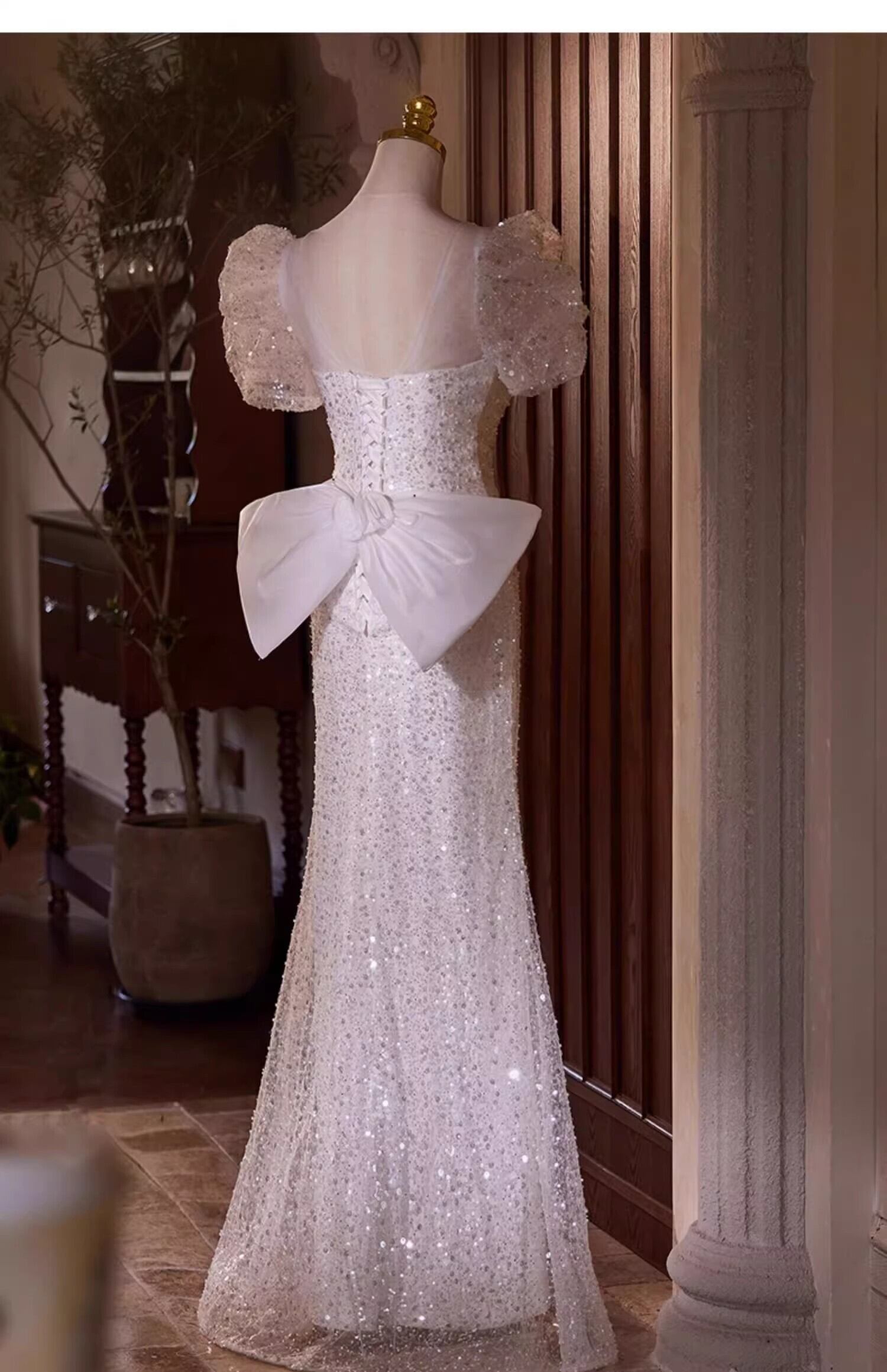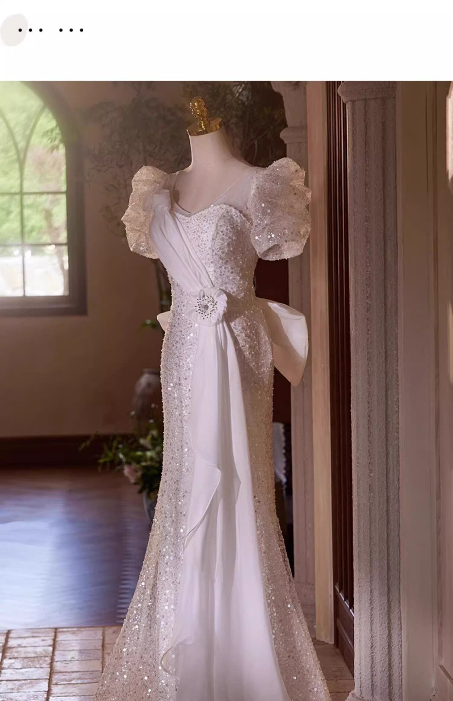 高級キラキラチュール ウエディングドレス 優雅なシルエット パーティードレス ダンスドレスマーメイドライン【色変更可能】