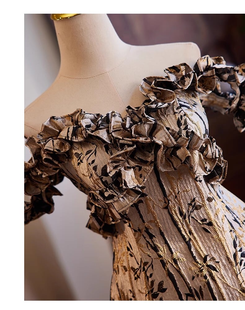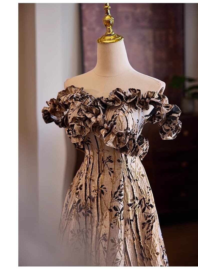 輝きな光彩を放つ カラードレスオフショルダー 贅沢な総レース ウエストリボン パーティードレス 演奏ドレス【色変更可能】